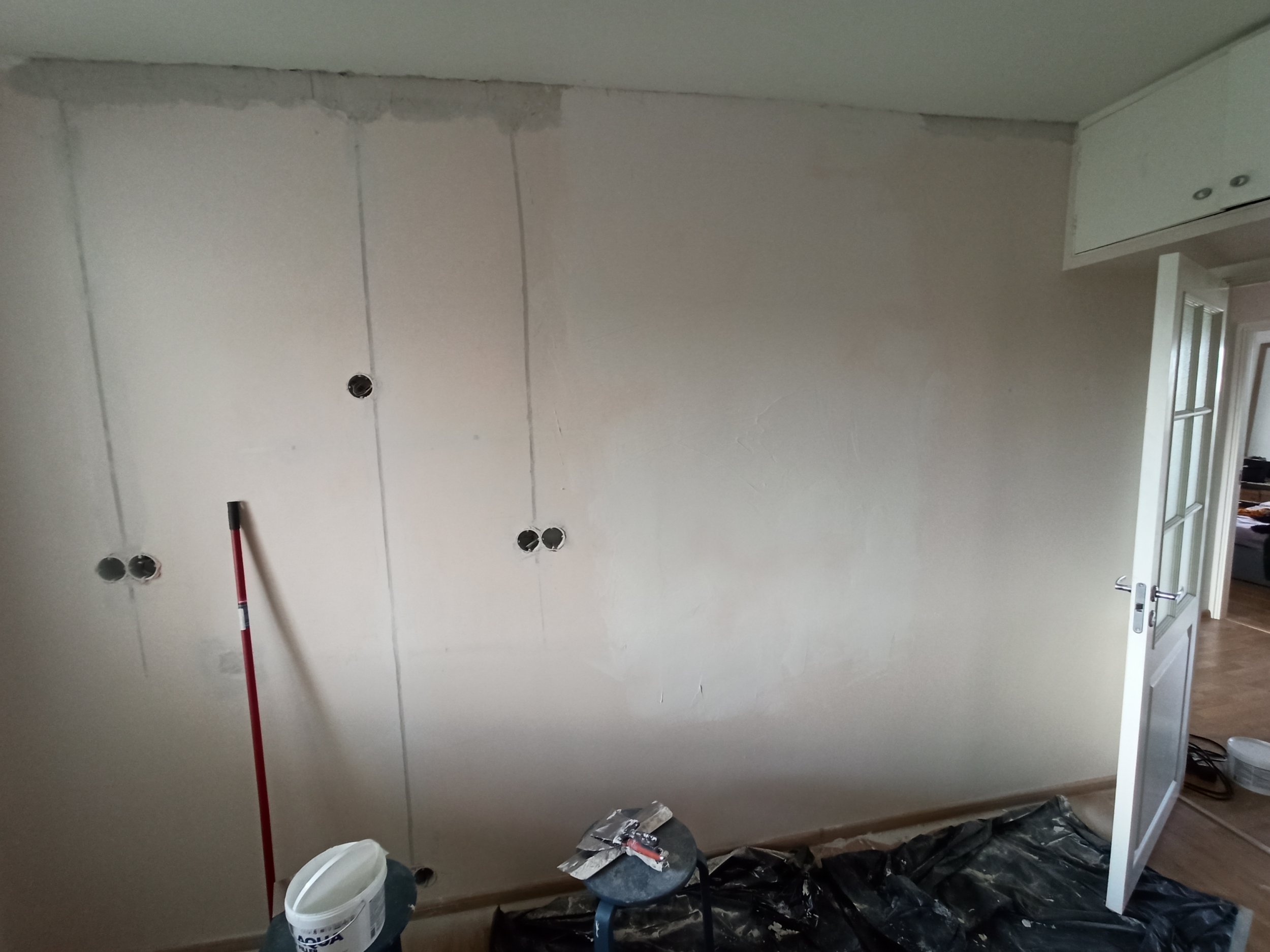 Mingid materjalid on meil ka olemas (värv, 2 ämbrit pahtlit, pahtlilabidad ja roosa Aquastop) ja kodu kõrval on ka ehituspood, kust saame värvi ja pahtlit vajadusel juurde osta. Tööriistu vm vahendeid meil ei ole. Võime eraldi kokku leppida selle osas.