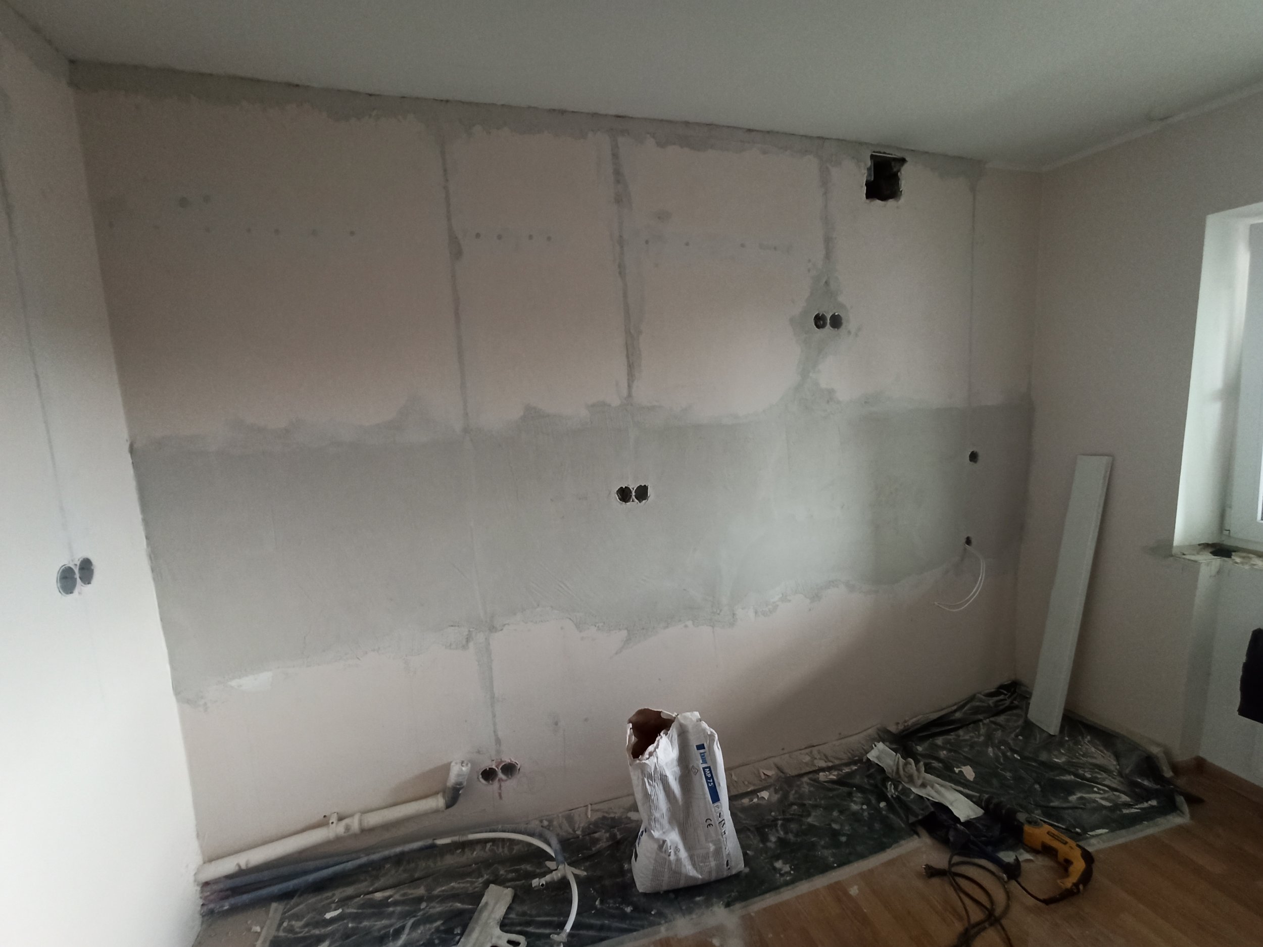 Soovime köögi seinu ette valmistada enne köögimööbli tulekut. Elektrisüsteem tehti korda, krohv on ka peal. Vaja oleks lihvida, veidi pahteldada (osaliselt), kruntida ning värvida (osaliselt). Osaliselt tähendab seda, et kolmes ja pooles seinas on köögimööbel põrandast laeni ning selle alt pole vaja pahteldada ega värvida. Välja jääb paistma pool seina, üks nurk koos lambi lülitiga ja aknaga sein osaliselt. Need sooviksime valgeks värvida. Tegin video ka täpsemate kohtade näitamiseks.