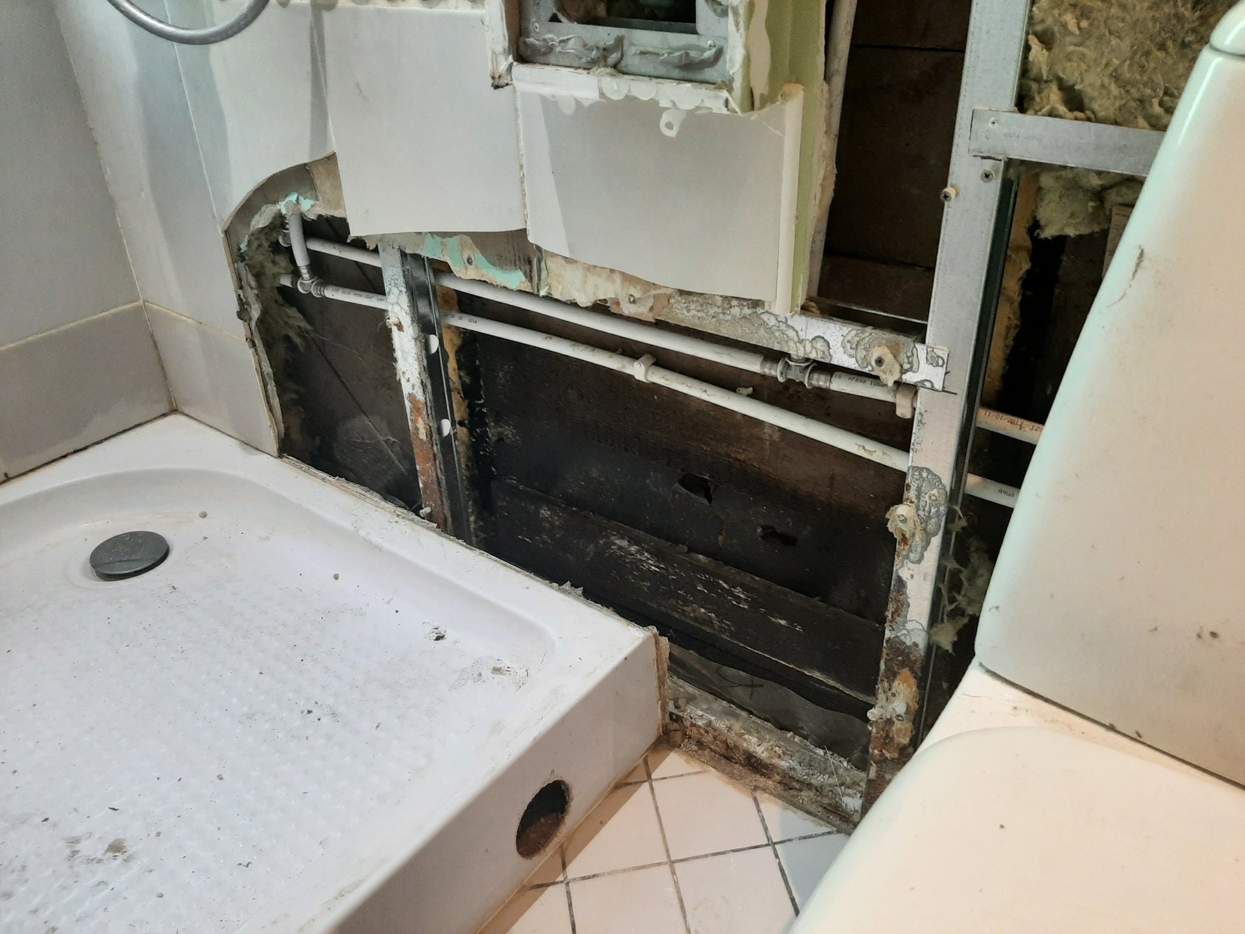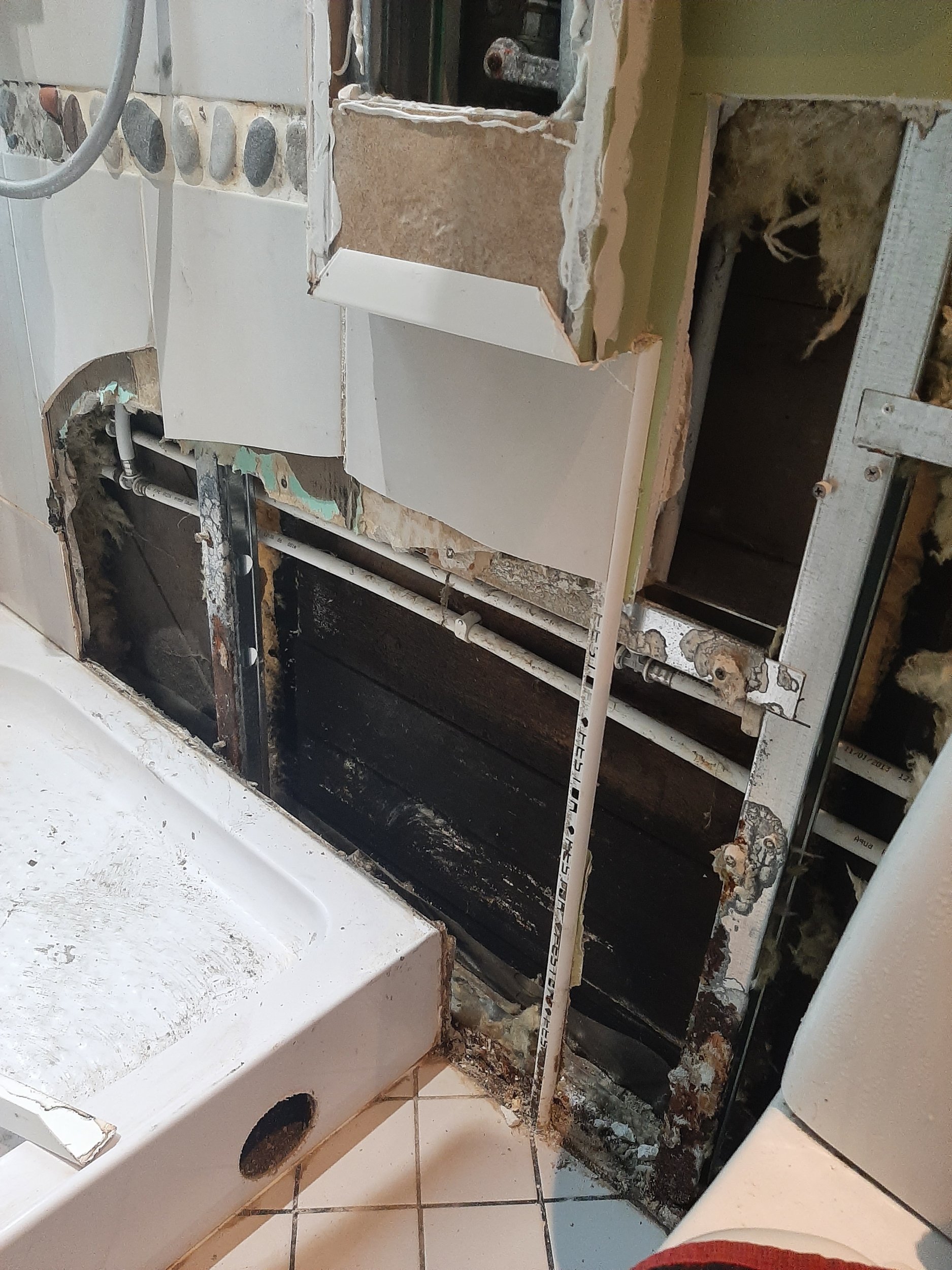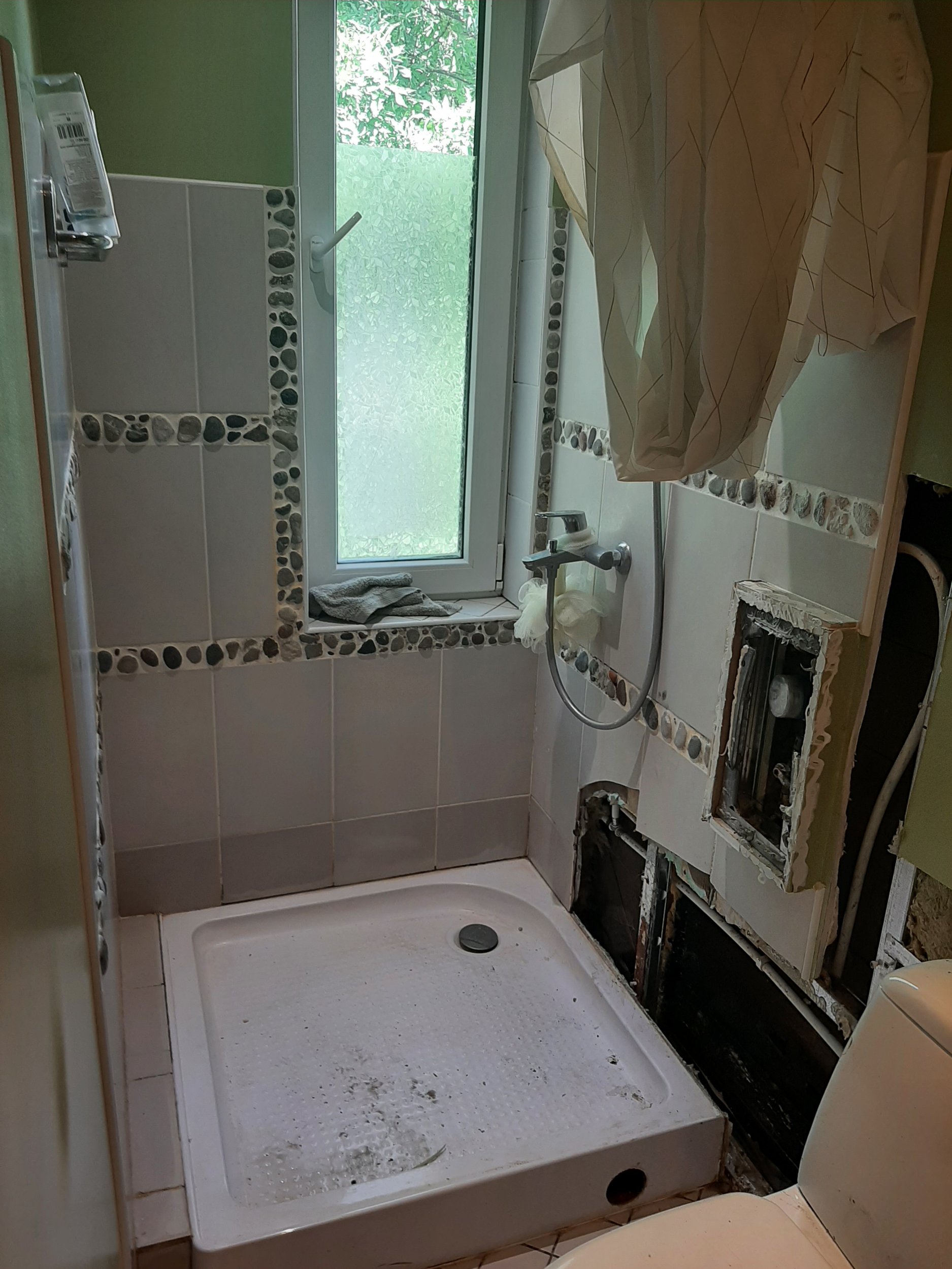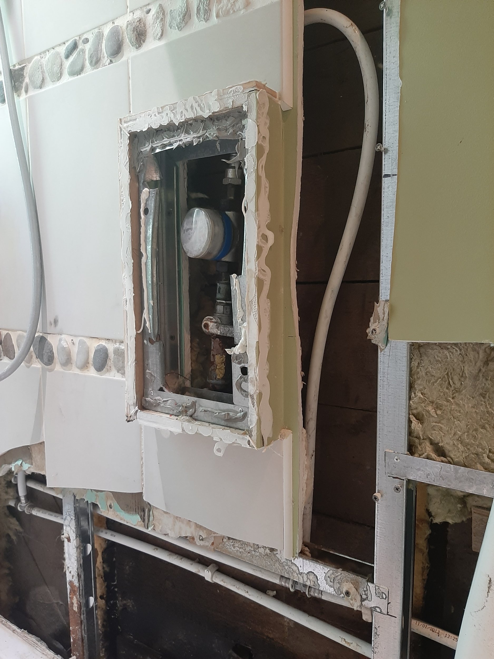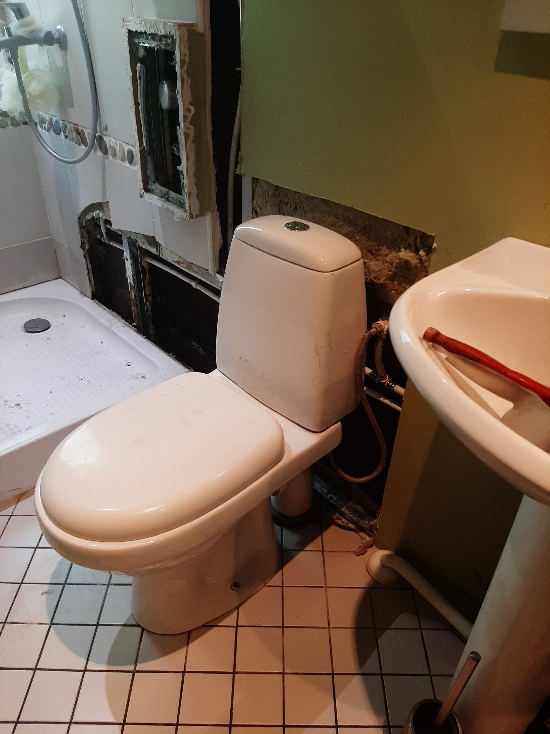Vannitoa seisukord hetkel selline, et osaliselt üks sein veetoru lekke tuvastamiseks lahti tehtud.