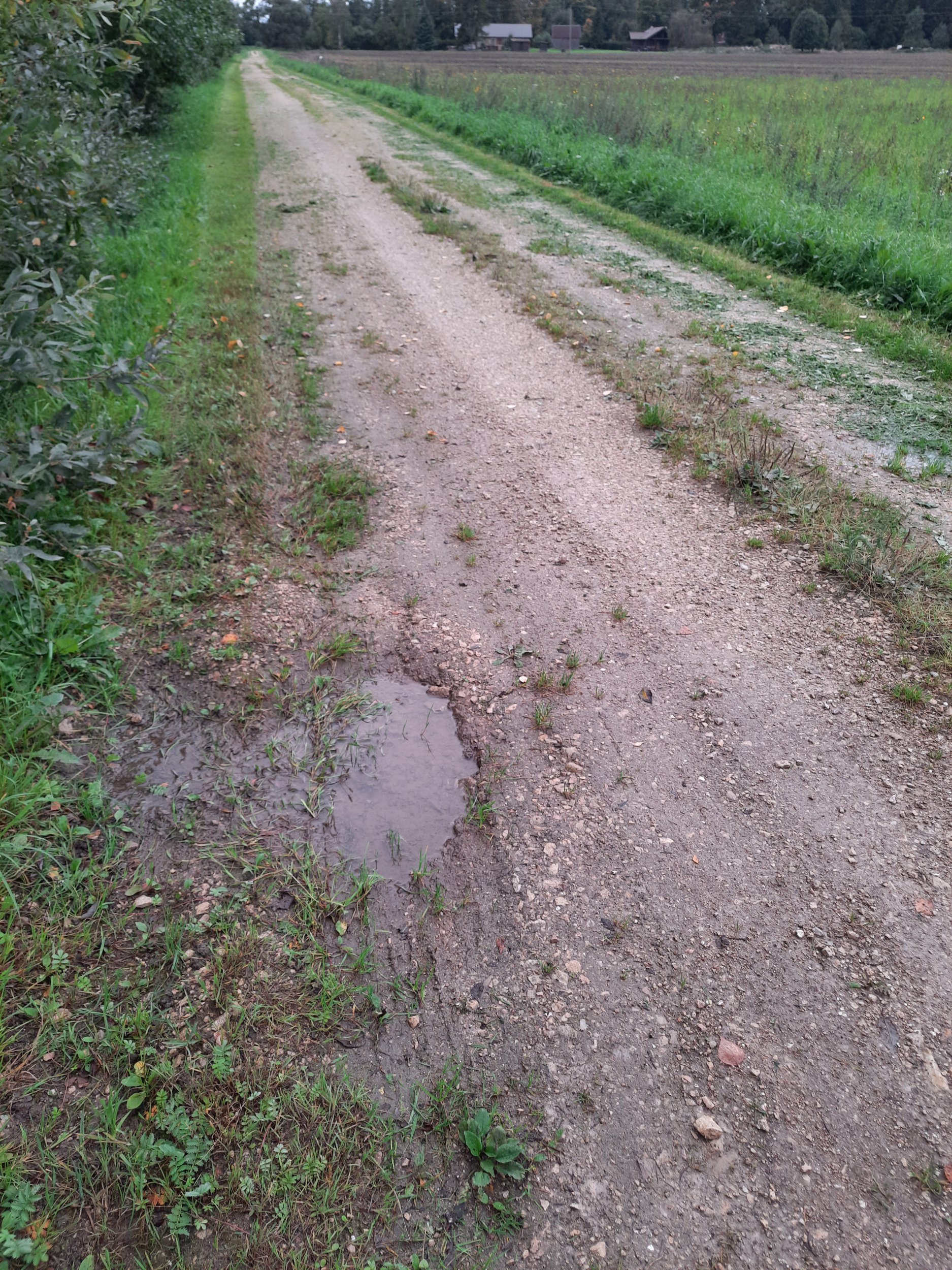 Umbes 450m pikkune, 3m laiune tee vaja hööveldada, auke täita. Tee on uuendatud 6a tagasi, peale seda pole suuremat hooldust tehtud. Teeääred ja keskelt omajagu täis kasvanud.