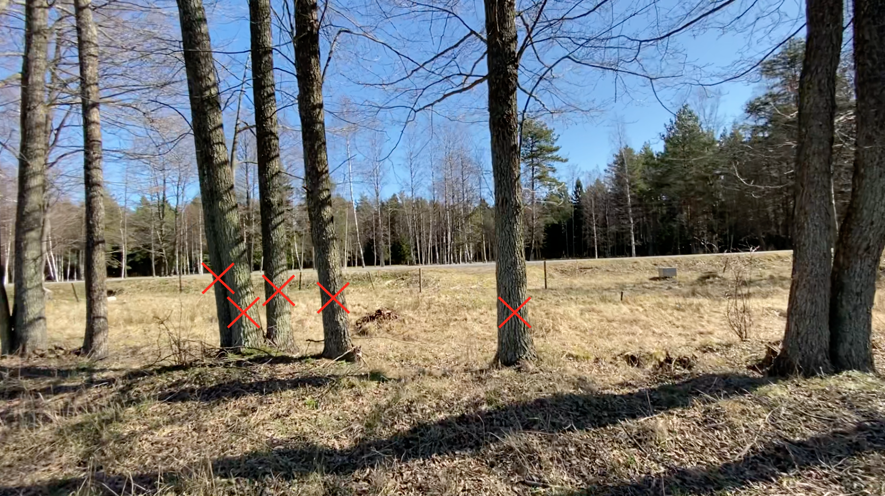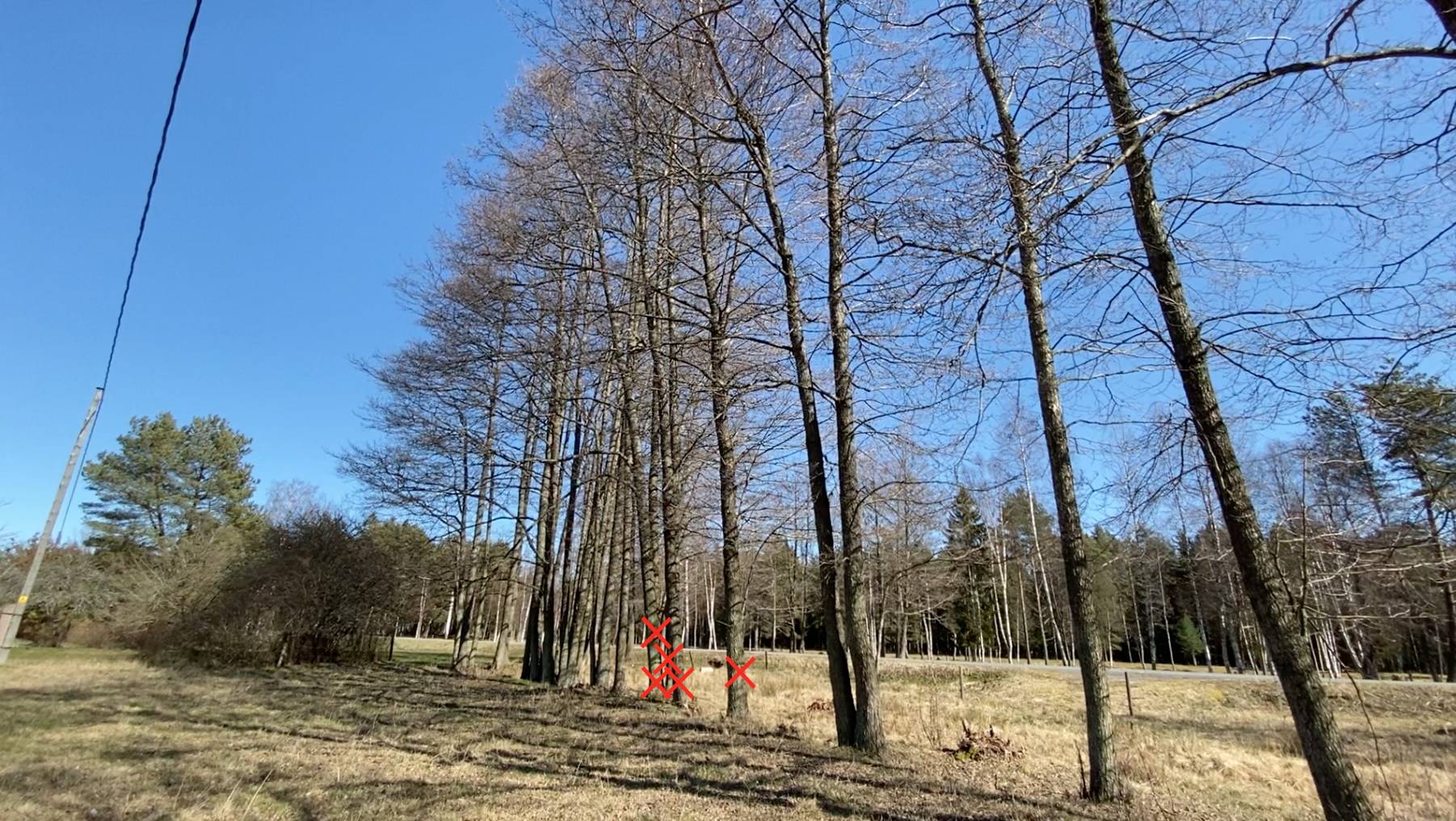 Puud asuvad riigimaanteelt ca 15m kaugusel, otse mahasõidu ees. Kände ei pea välja võtma, üritada võimalikult maadligi maha võtta, hiljem kaevab kopp kännud välja. Maanteest eemale langetamisel võib segada elektriliin, mis asub ca 10m kaugusel. Piltidel maantee suunas olev elektrikarjus saab eemaldatud enne tööde algust.
