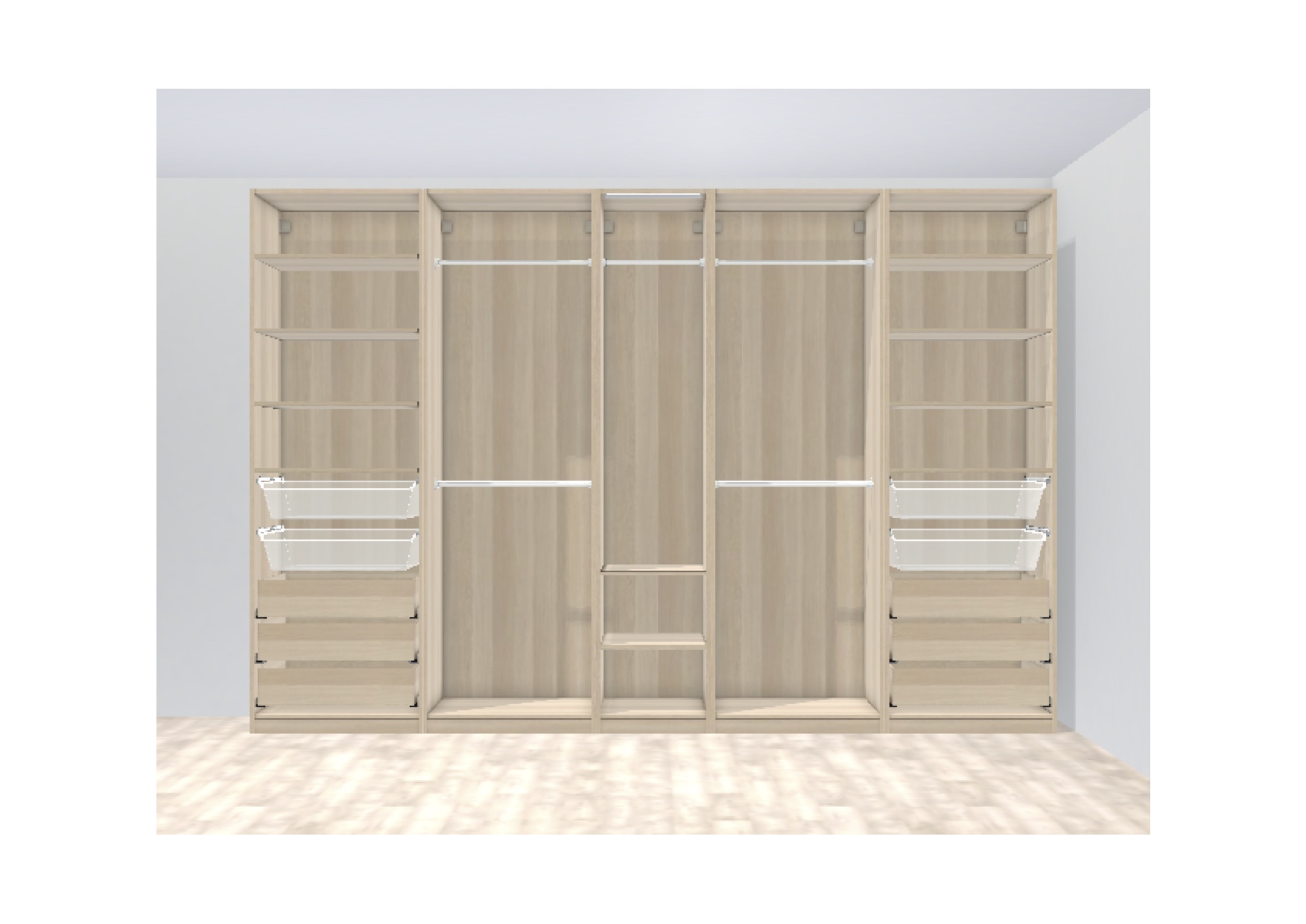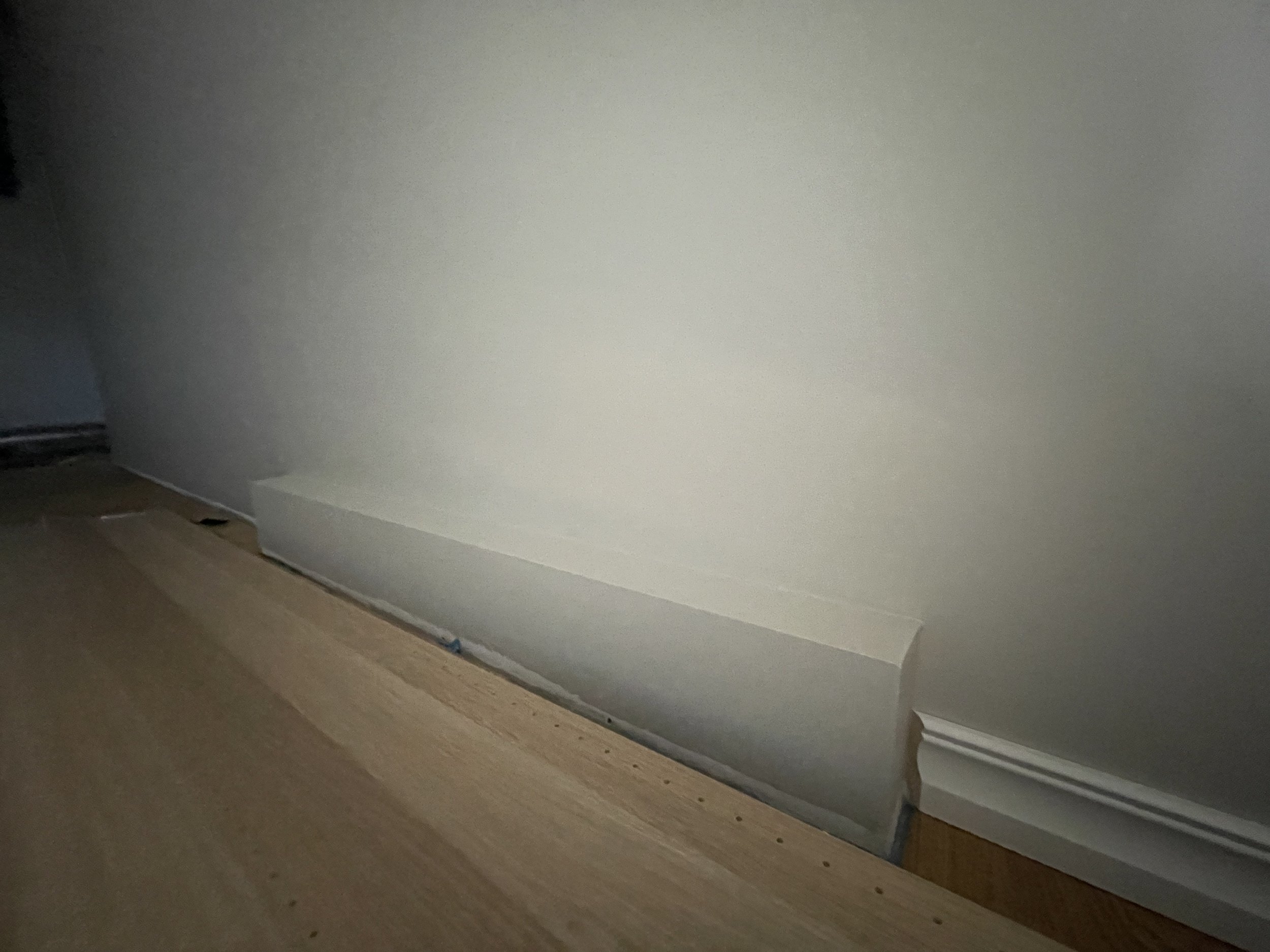 Kokku monteerimist ja paigaldamist ootab Ikea PAX garderoobikapp kogulaiusega 3,5m. NB!seina ääres, kuhu kapp tuleb paigaldada, on põrandale ehitatud torustikule ümber kipskast ( sügavus 8 cm, kõrgus 18cm x laius 140 cm . Mööblile tulevad teha vajalikud sisselõiked (vähemalt kolmele raamile), et kappi oleks vastu seina võimalik paigaldada. Muuhulgas tuleb arvestada, et muuta tuleb ka vähemalt ühe sahtli sügavust.