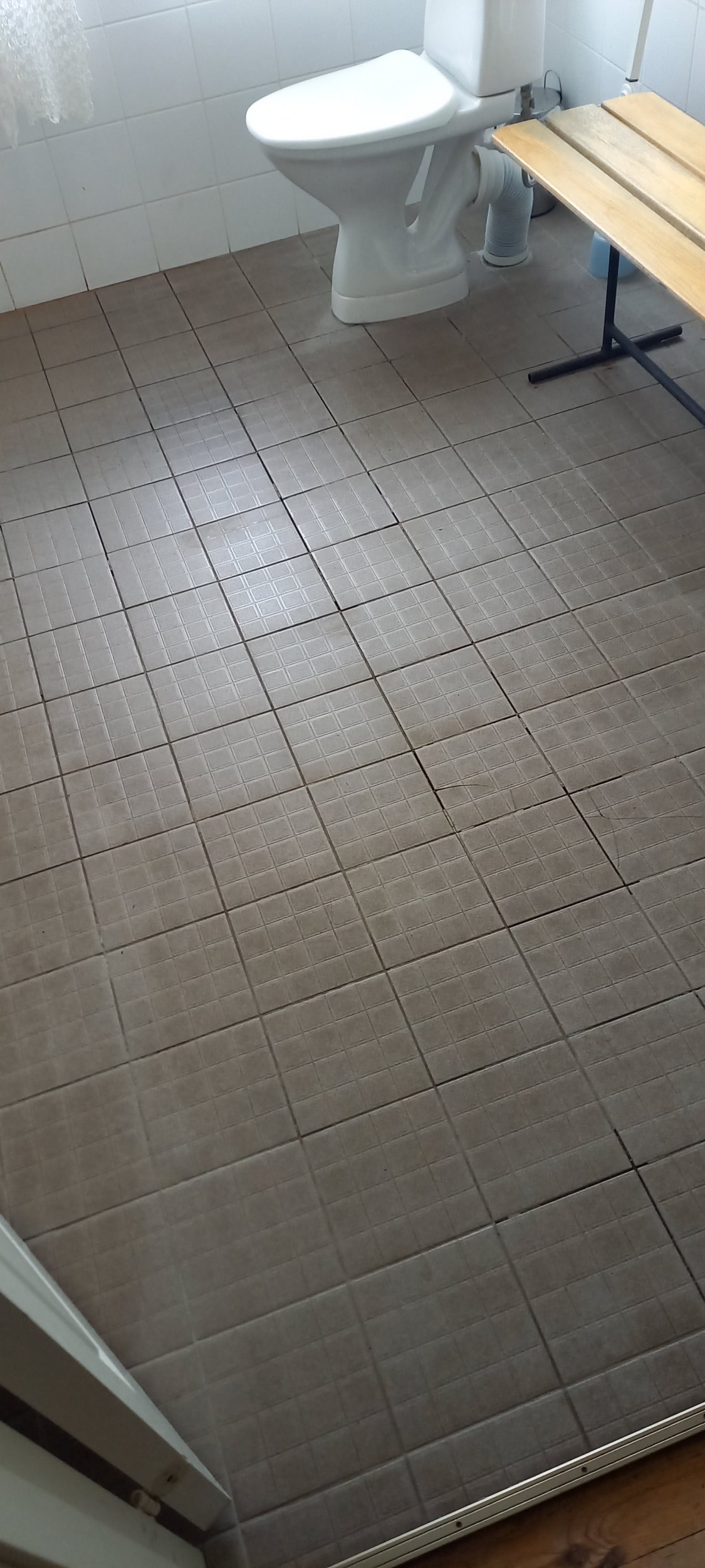 WC- ja duźźiruumi põrandaplaadid on lahti. Vist tuleks kõik uuesti plaatida. Põranda pindala 3x2.5 m. Põrandaküte on olemas.