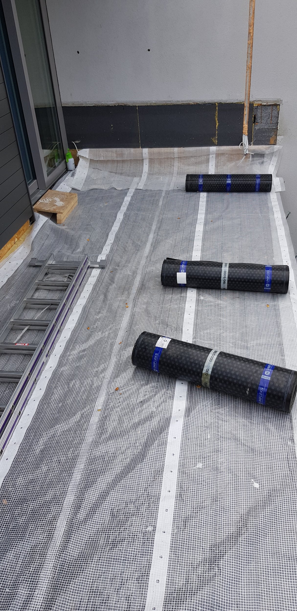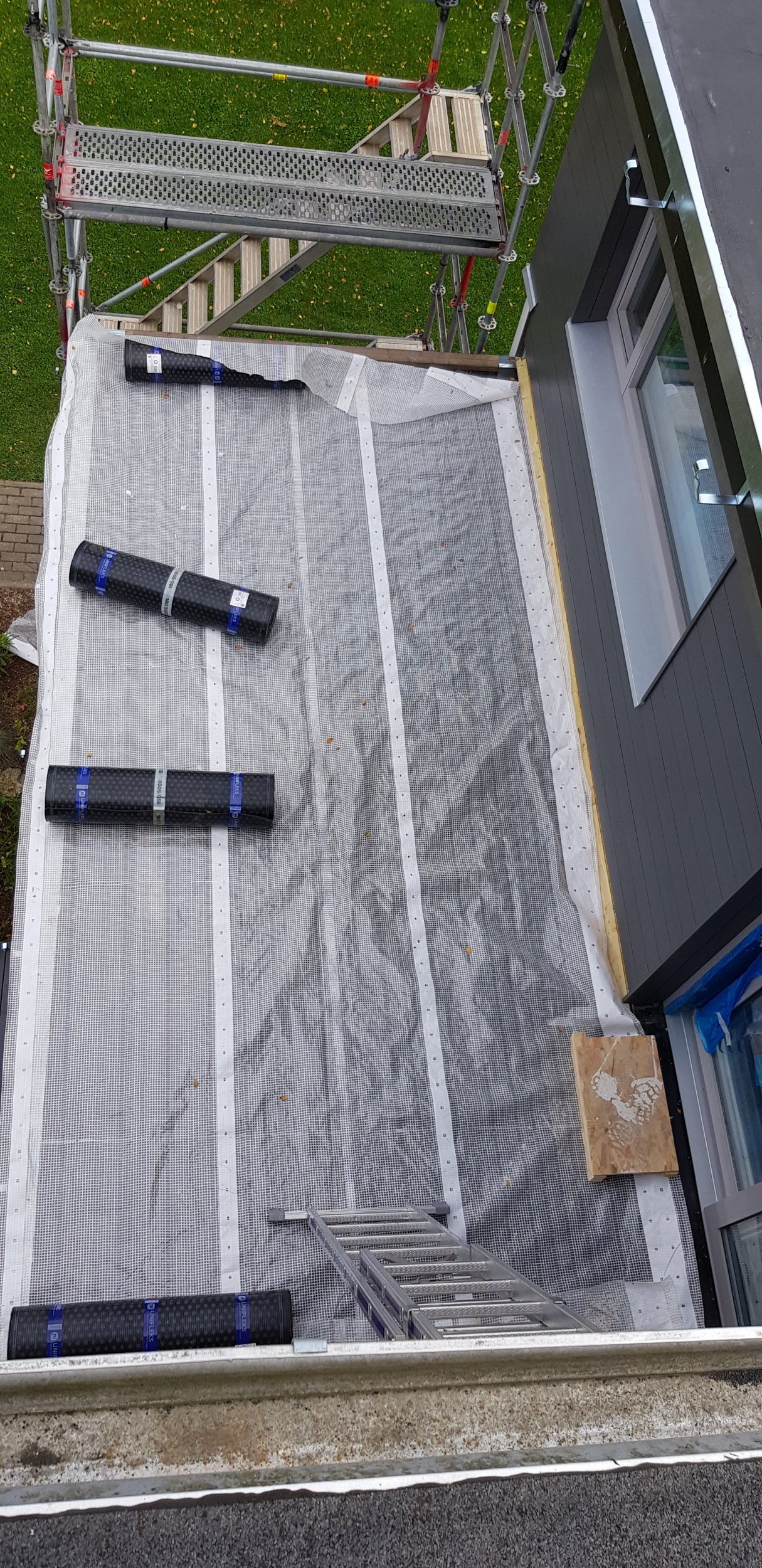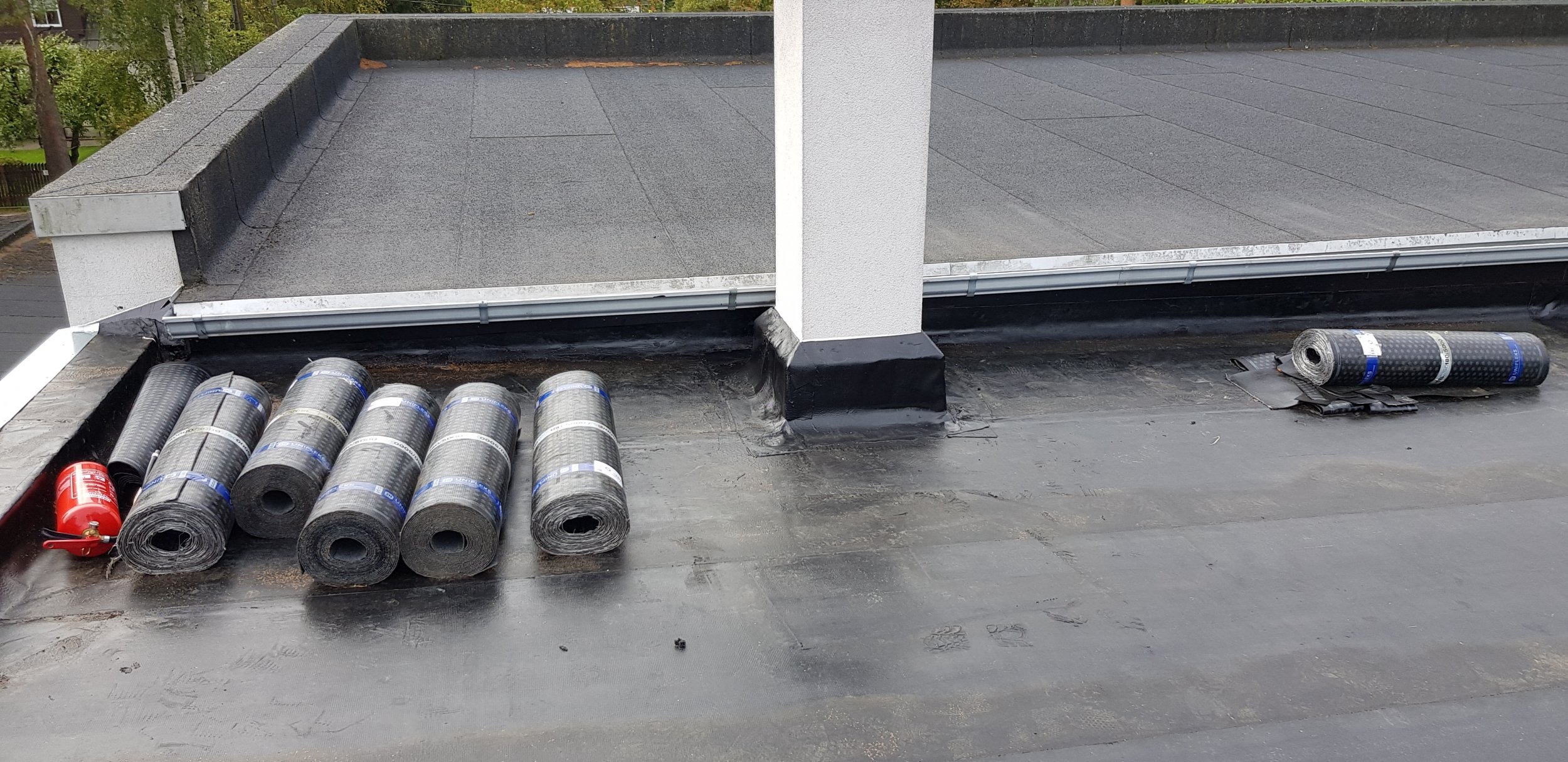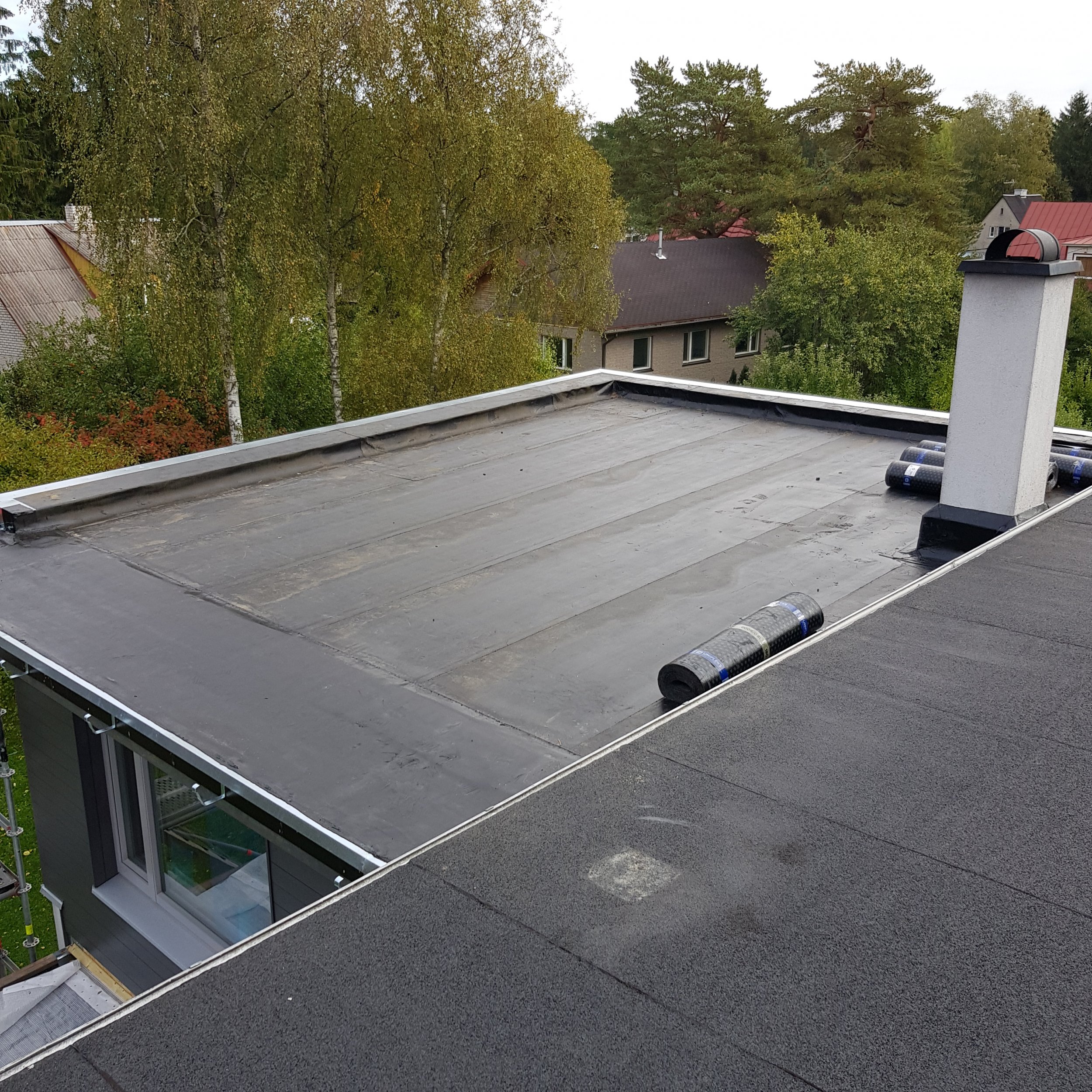 Rullmaterjali Uniflex EKP paigaldamine lamekatusele koos ülespööretega lamekatuse (osb plaat) peale.