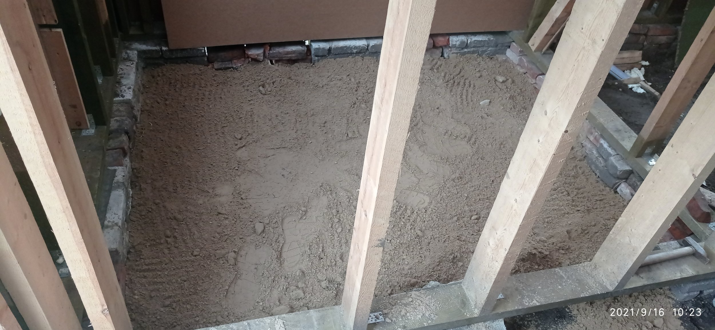 Kanalisatsioonitorude paigaldus (väljaviik ja ühendus tehtud),liivapadi, penoplasti paigaldus, armatuuri paigaldus, küttetoru paigaldus armatuurvõrgule, betooni valamine.
