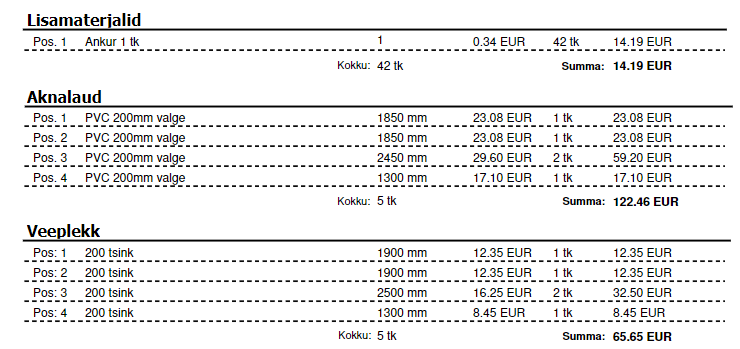 | Ehitusmaterjalid: | Töö tegija poolt |