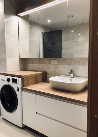 Vannitoas valamukapp koos pesumasina tasapinnaga.