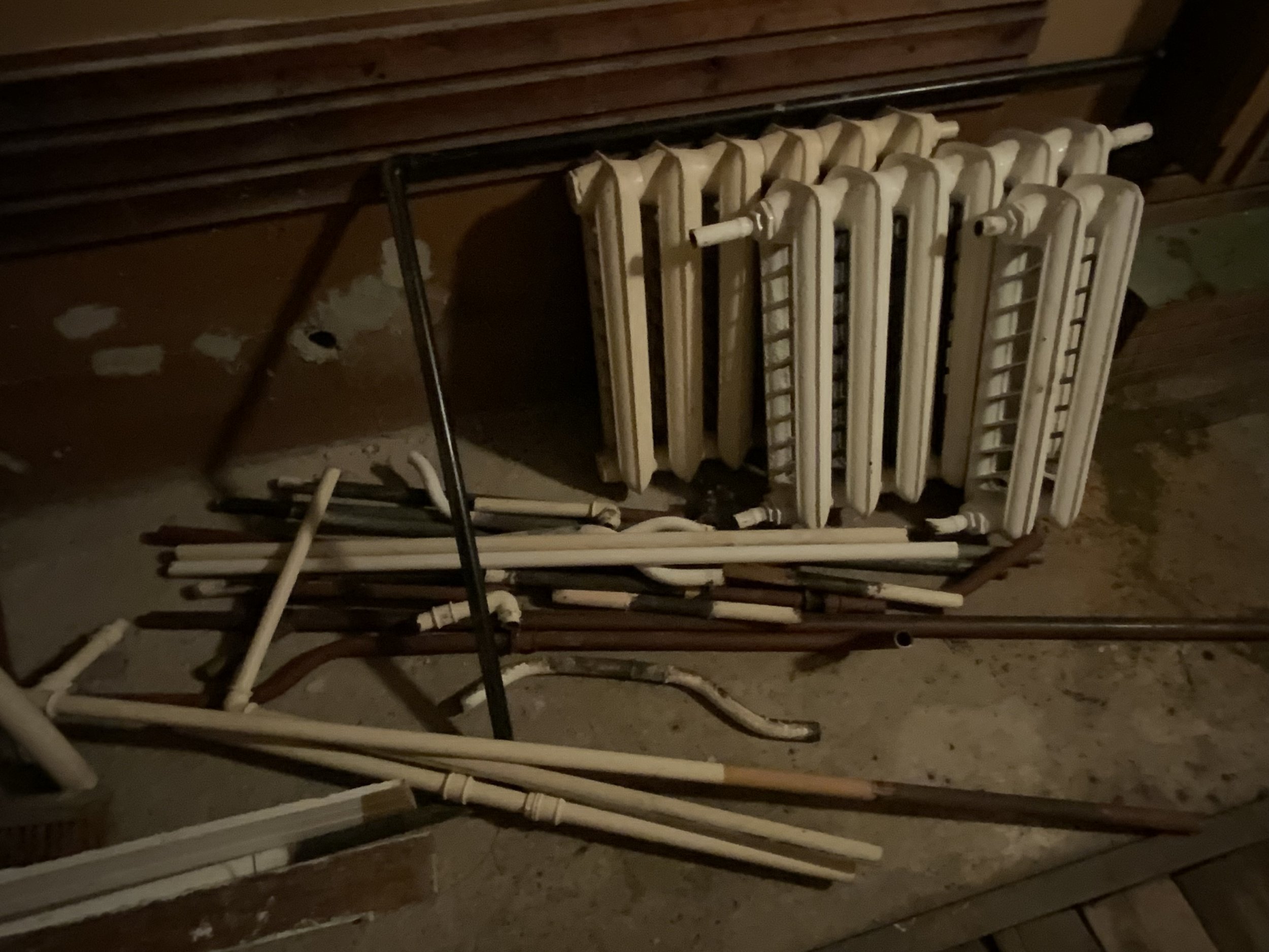 Juba on eemaldatud 5 radiaatorit (28 ribi) ning torusid 25 jm, ka need tuleb ära viia.