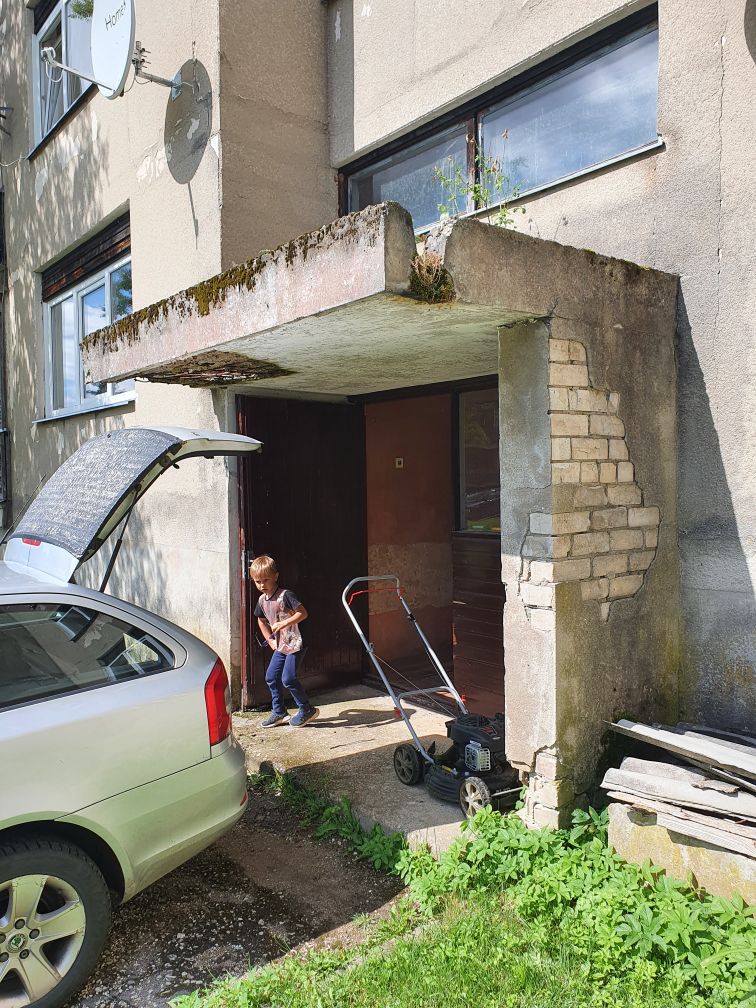 Vaja eemaldada lagunenud betoonist varikatus. Ehitada puidust uus, phe viiluga ettepoole, katta plekiga, katta küljed ja alt lagi voodrilauaga, panna alla üks tugipost metallist