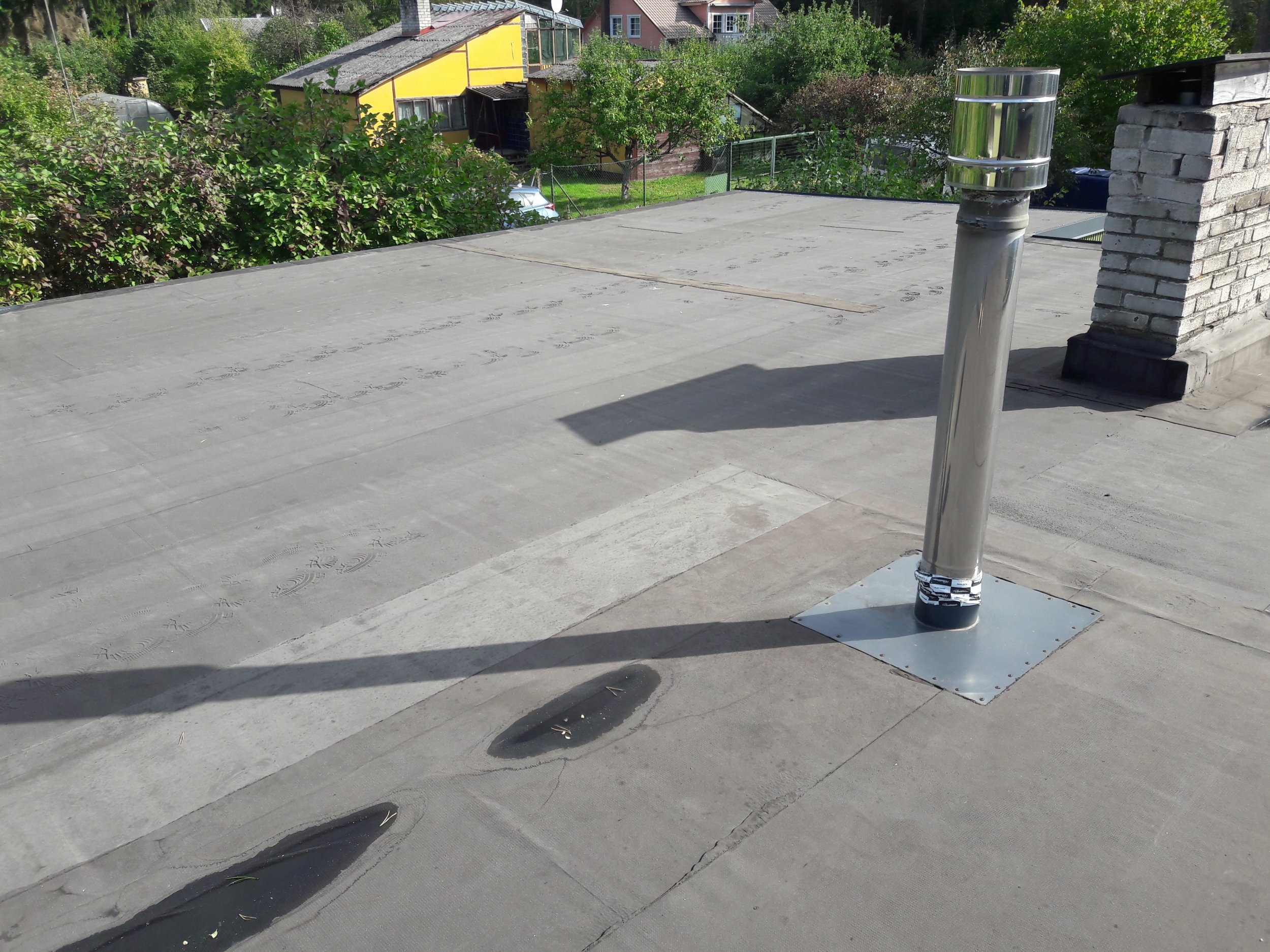 Lamekatus, ühes tasapinnas, 96m2. Ühe korruseline maja. Vaja on panna üks kiht rullmaterjali ja teha kahe korstna ümbrused.