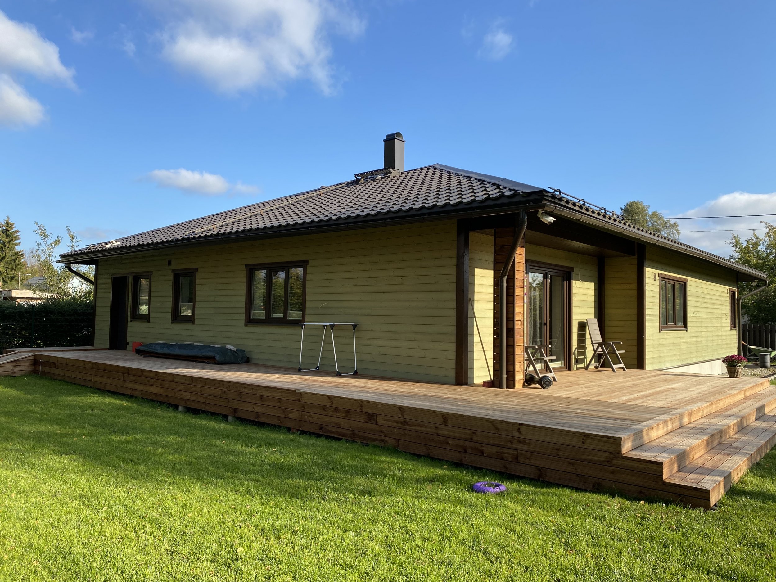 Vaja on fasaadil kooruv värv maha kraapida ja pinstsliga üle värvida kaks kihti. Uksed -aknad ja terass enne tööd tuleb kinni katta.
