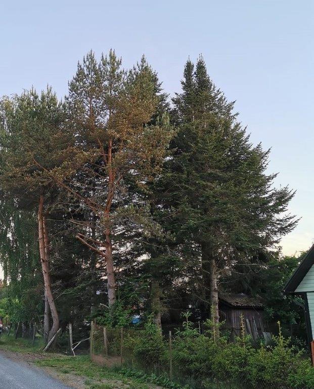 Maha vaja võtta 4 suurt kuuske. Raieluba olemas. Oksad ja pakud võivad jääda krundile.