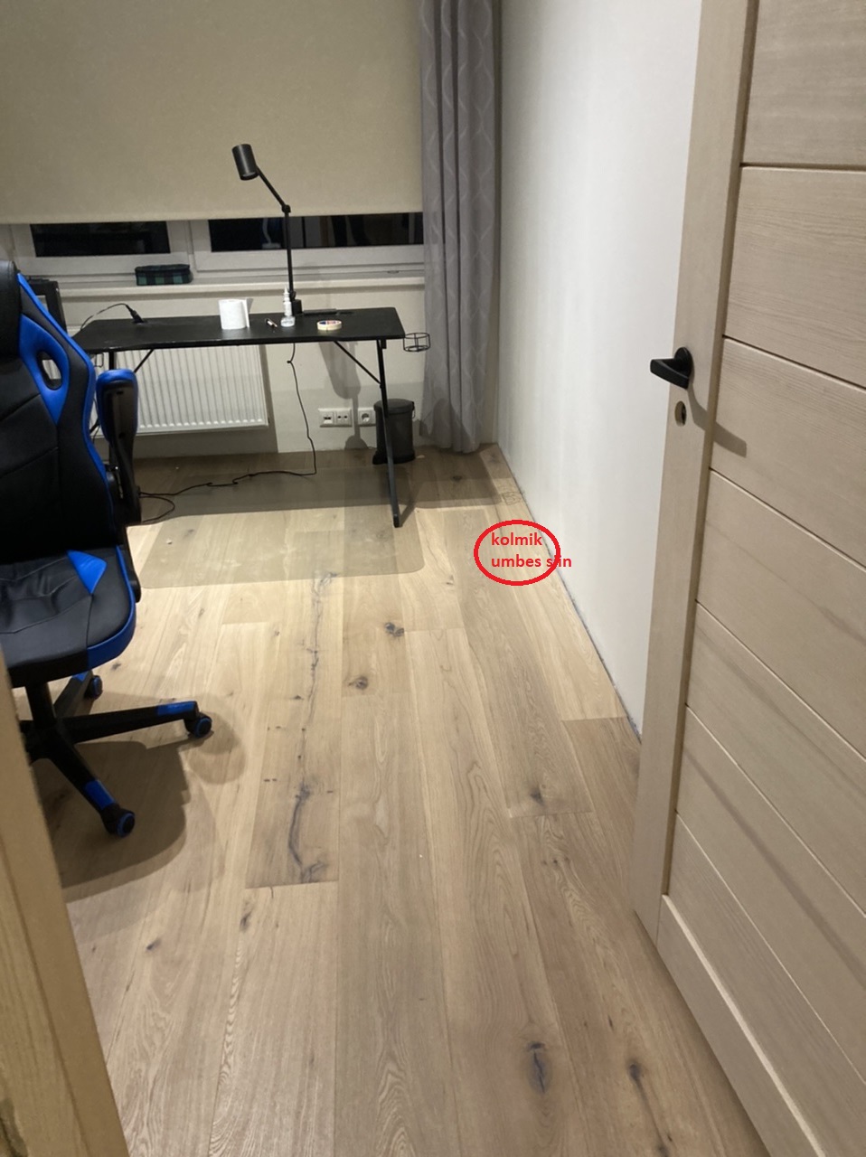 Parkett tõenäolise lekke kohalt eemaldatud. Pakkumises palun lisainfona eraldi välja tuua konstruktsioonide avamine+sulgemine vs toru paranduse hind (sest see ei lähe kindlustuse alla).