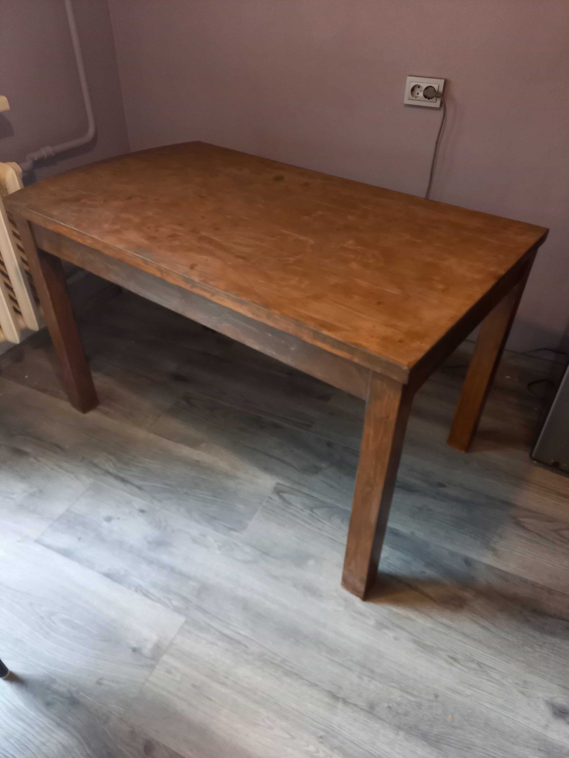 Puust söögilaud mõõtudega 75x130x75 tuleks puhastada vanast lakist ja lakkida uuesti.