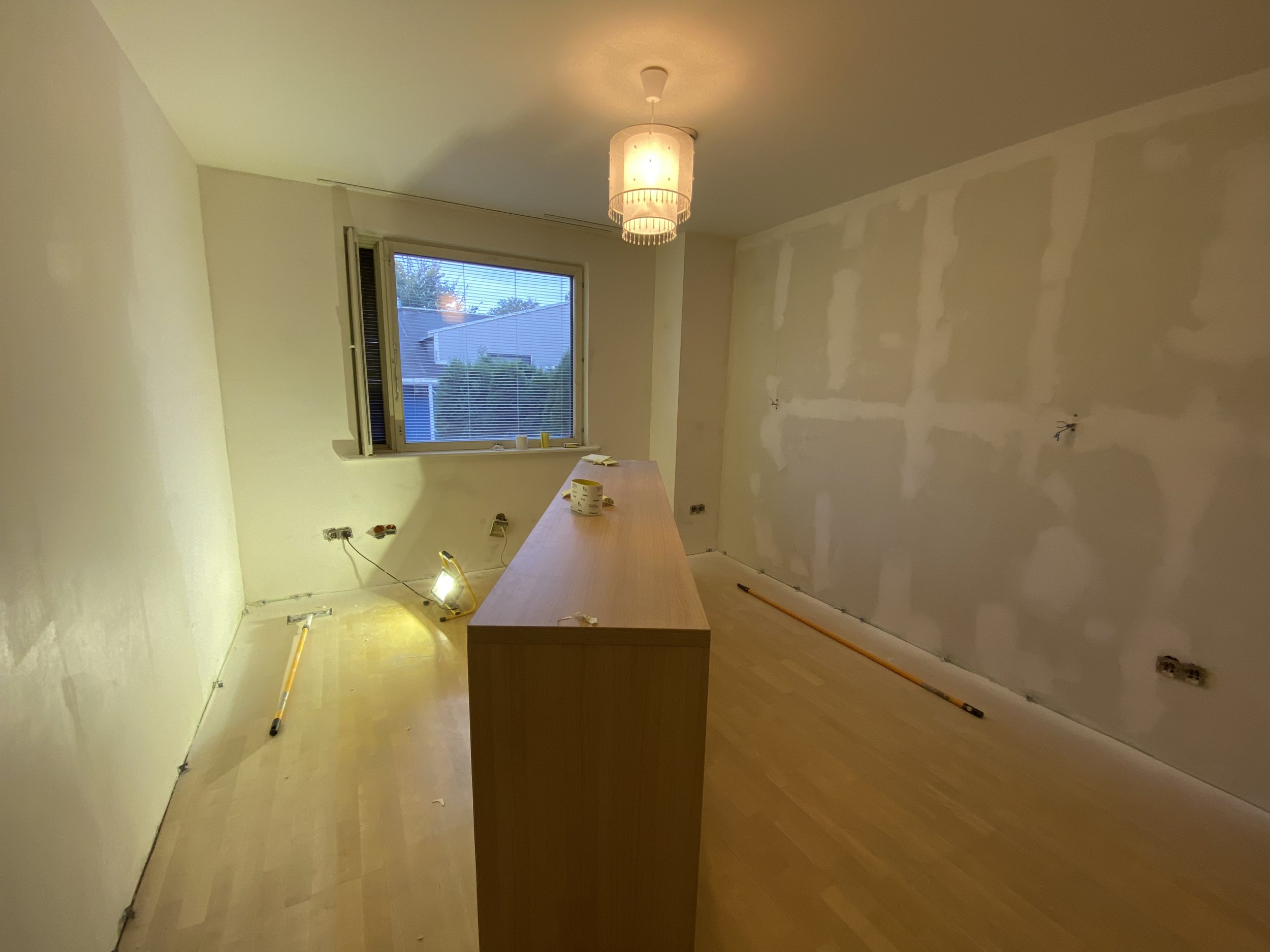 Magamistoa seinte viimistlemine, värvimine, ühe seina tapeetimine.