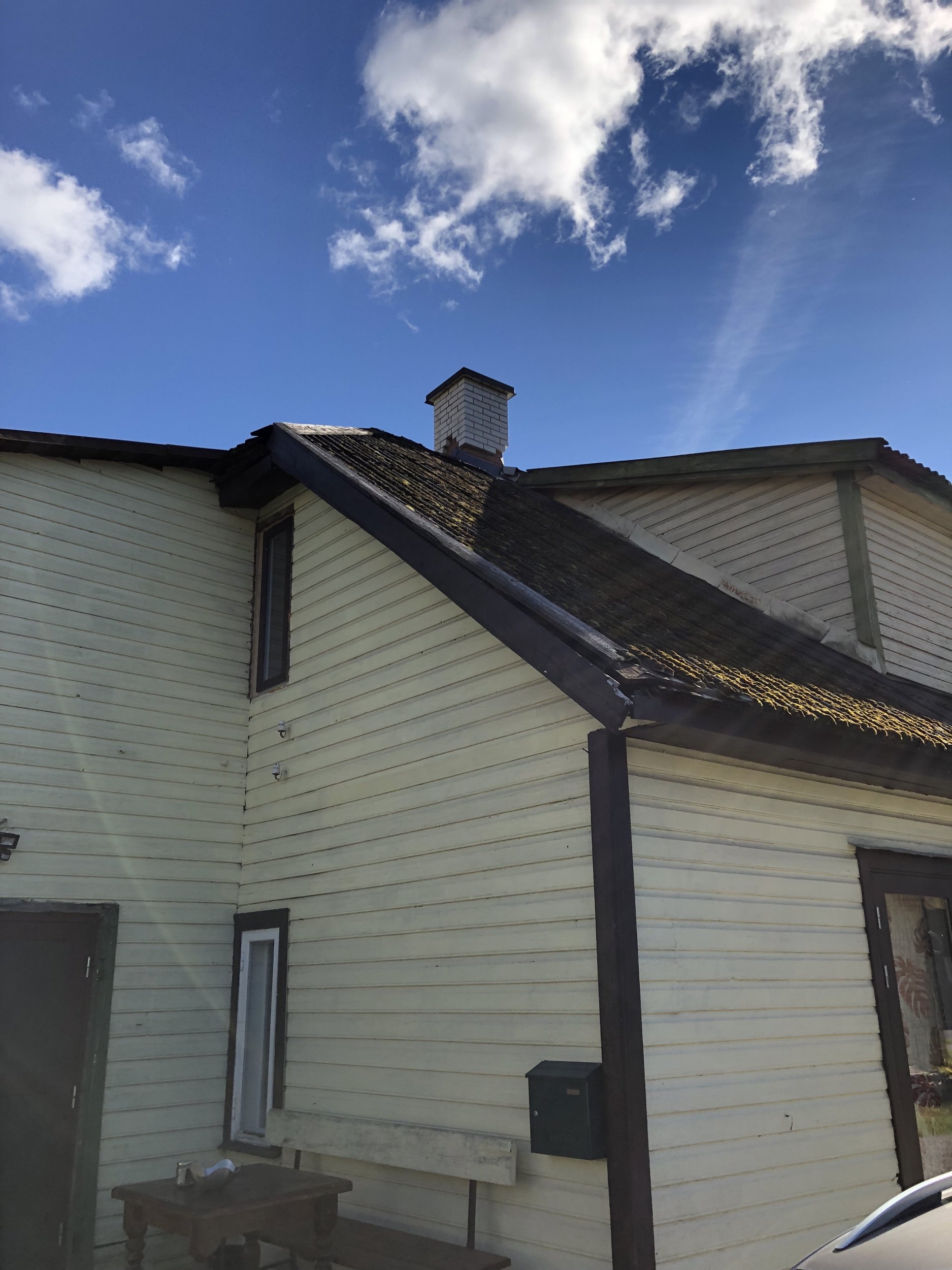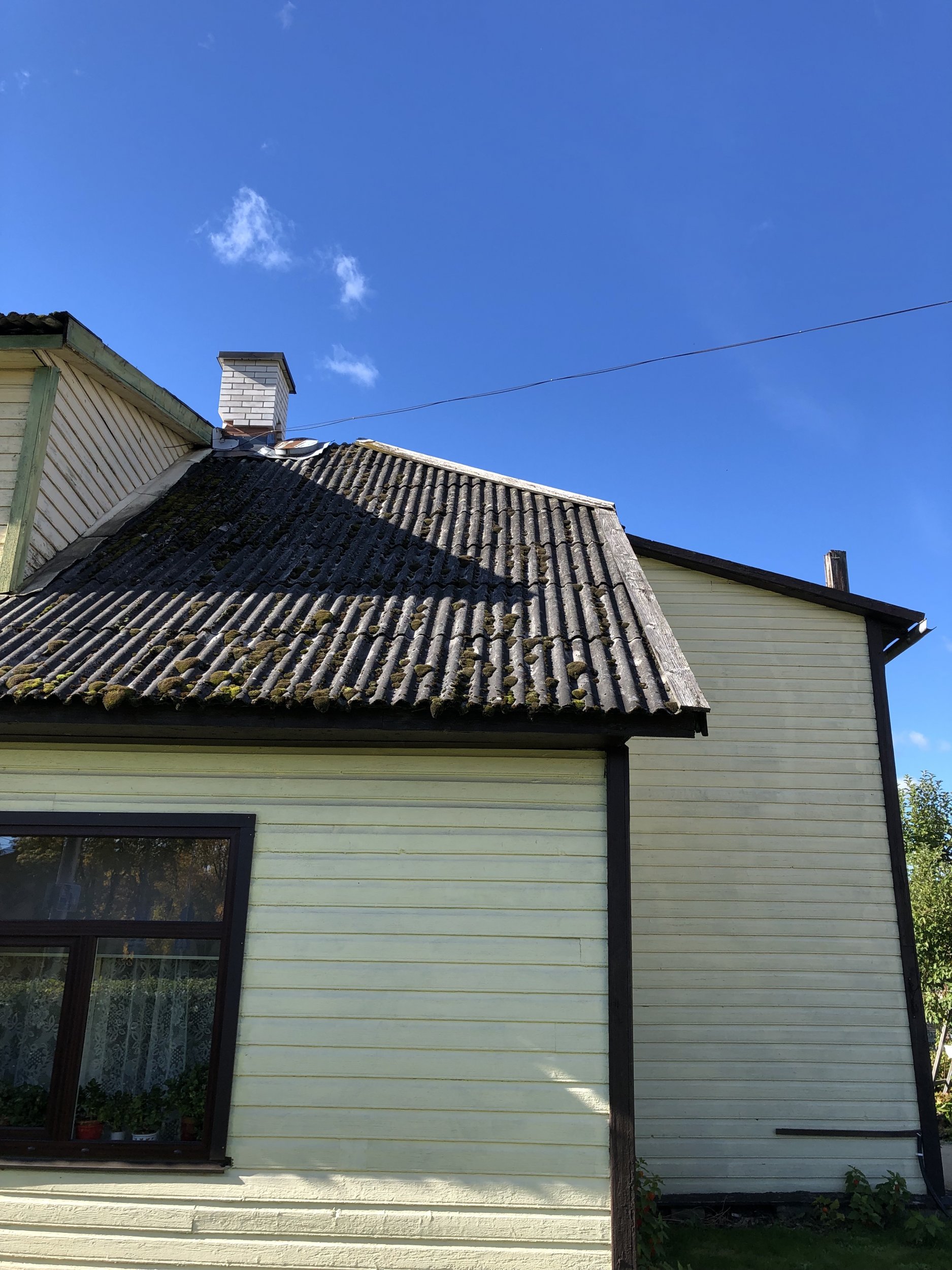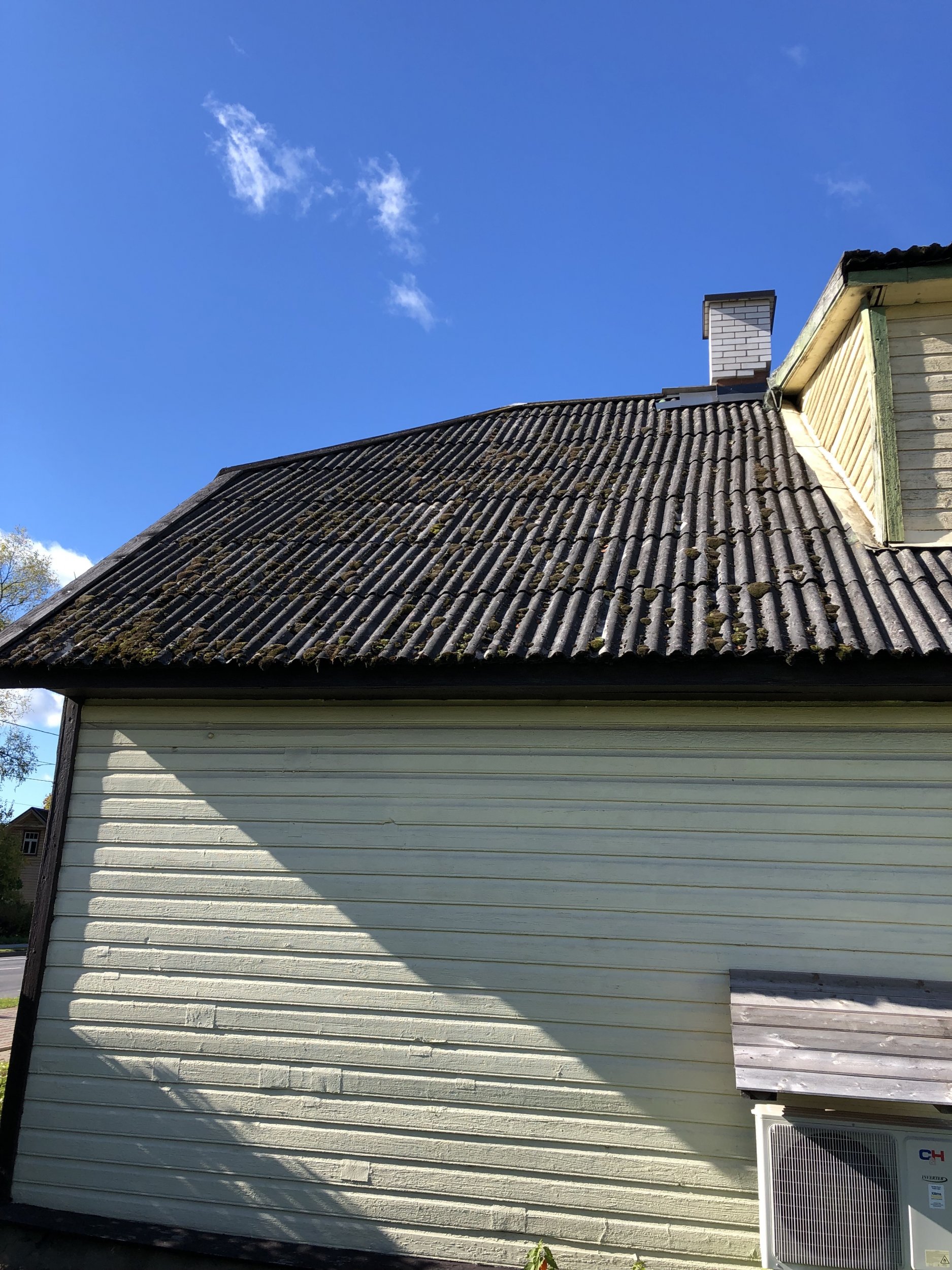 Vana eterniidi demontaaz, all olev laast katuse laastust puhastamine, katuse rihtimine, katuse kile. kiviprofiil plekk tume pruun paigaldamine, räästa kastide uuendamine, lume tõkked, korstna puhastamis redel ja kahe korstna vaheline llikumis rada, kõik ülemineku plekid ja muud tööks vajaminevad töövõtud.