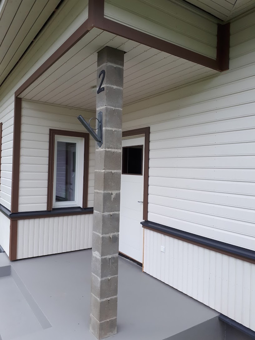 Vaja on laduda post 560x560 m, kõrgusega 2700 mm. Post ümbriteb olemasolevat tugiposti ja on dekoratiivne. Kasutada klombitud silikaattelliseid 250x60x65 ja klombitud nurgatelliseid 225x60x65. Iga kiht sisaldab 8 kivi - kumbagi mõõtu 4 tk. Kivid on olemas.
