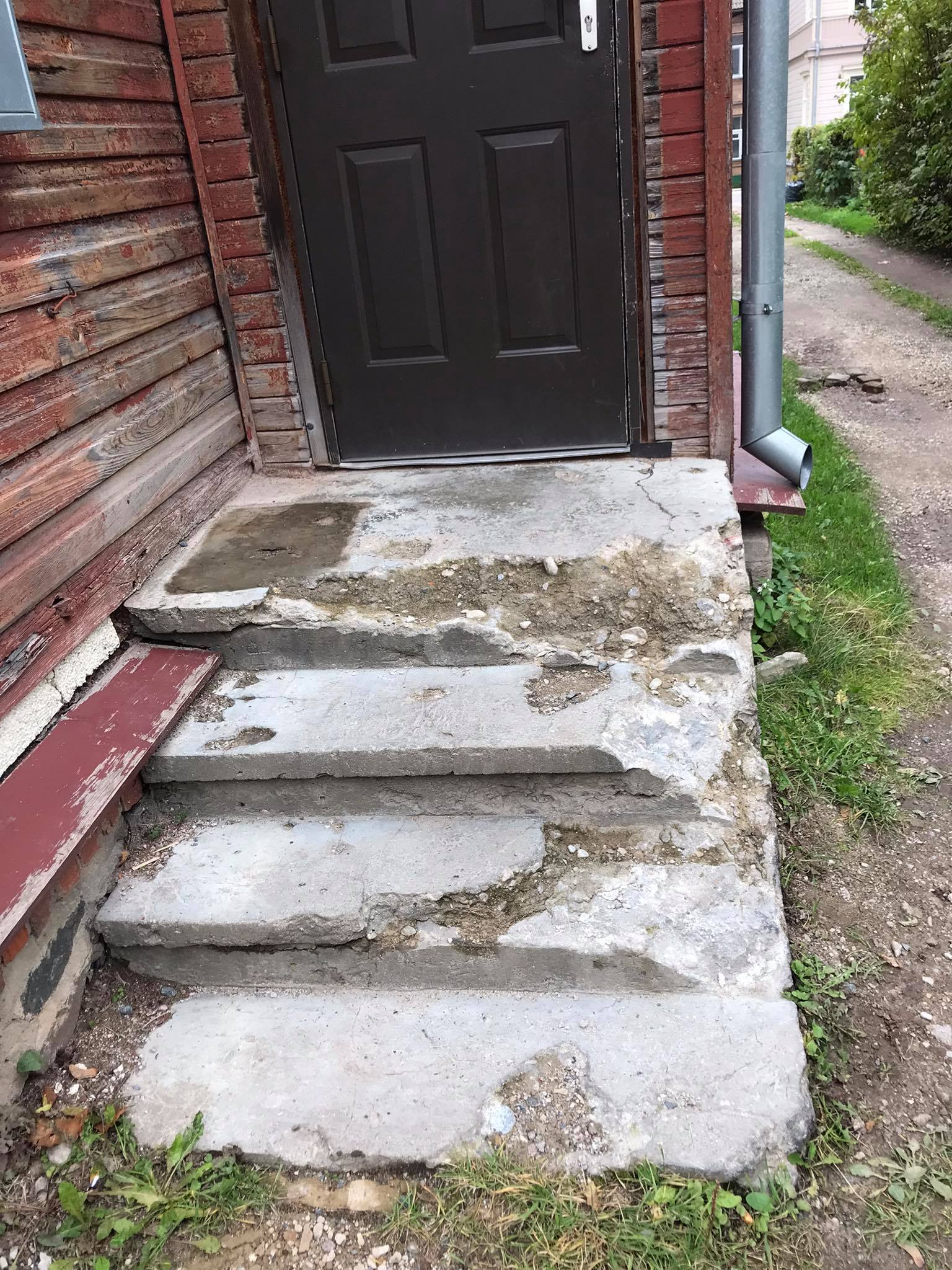 Lagunenud trepi asemele oleks vaja uut treppi umbes paariks aastaks. Pärast seda läheb maja fassaad (sellega seoses ka trepp) uuendamisele. Olen avatud erinevatele võimalustele, et trepp võimalikult lihtsalt kasutuskõlblikuks ja libisemiskindlaks saada.