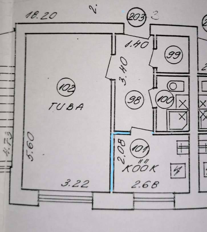 Soov on lammutada korteris osaliselt sein. Sein ei ole kandev. Lammutatavat pinda on natuke üle 2m, joonisel märgitud sinisega.