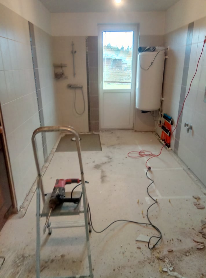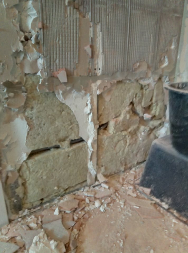 Vaja oleks eemaldada vanu keraaamilisi seinaplaate ca 10 m2. Kuna plaadid on paigaldatud kipsile ja tulevad ära koos kipsiga, siis on vaja eemaldada ka kipsplaat ja paigaldada uus - ca 20-25 m2.