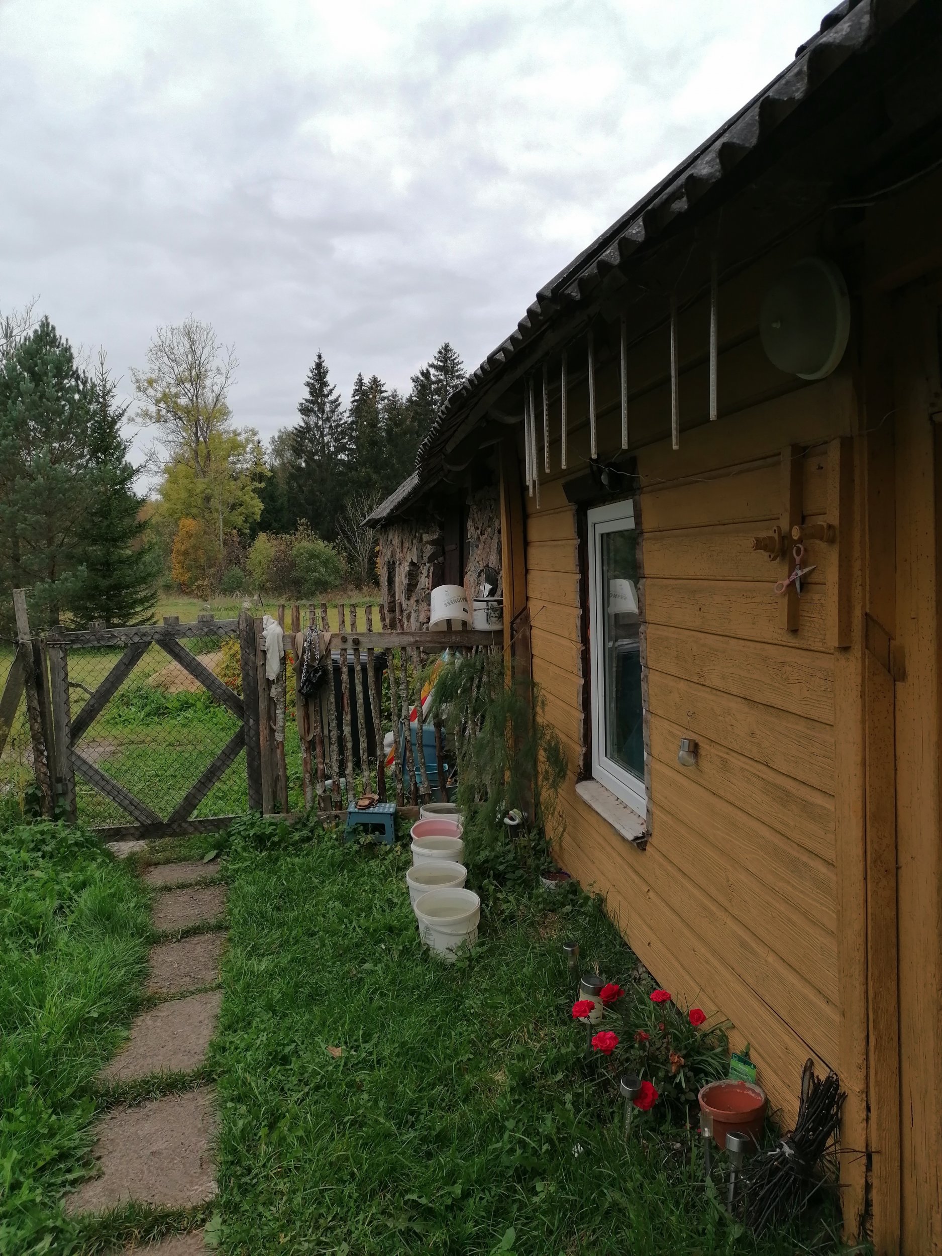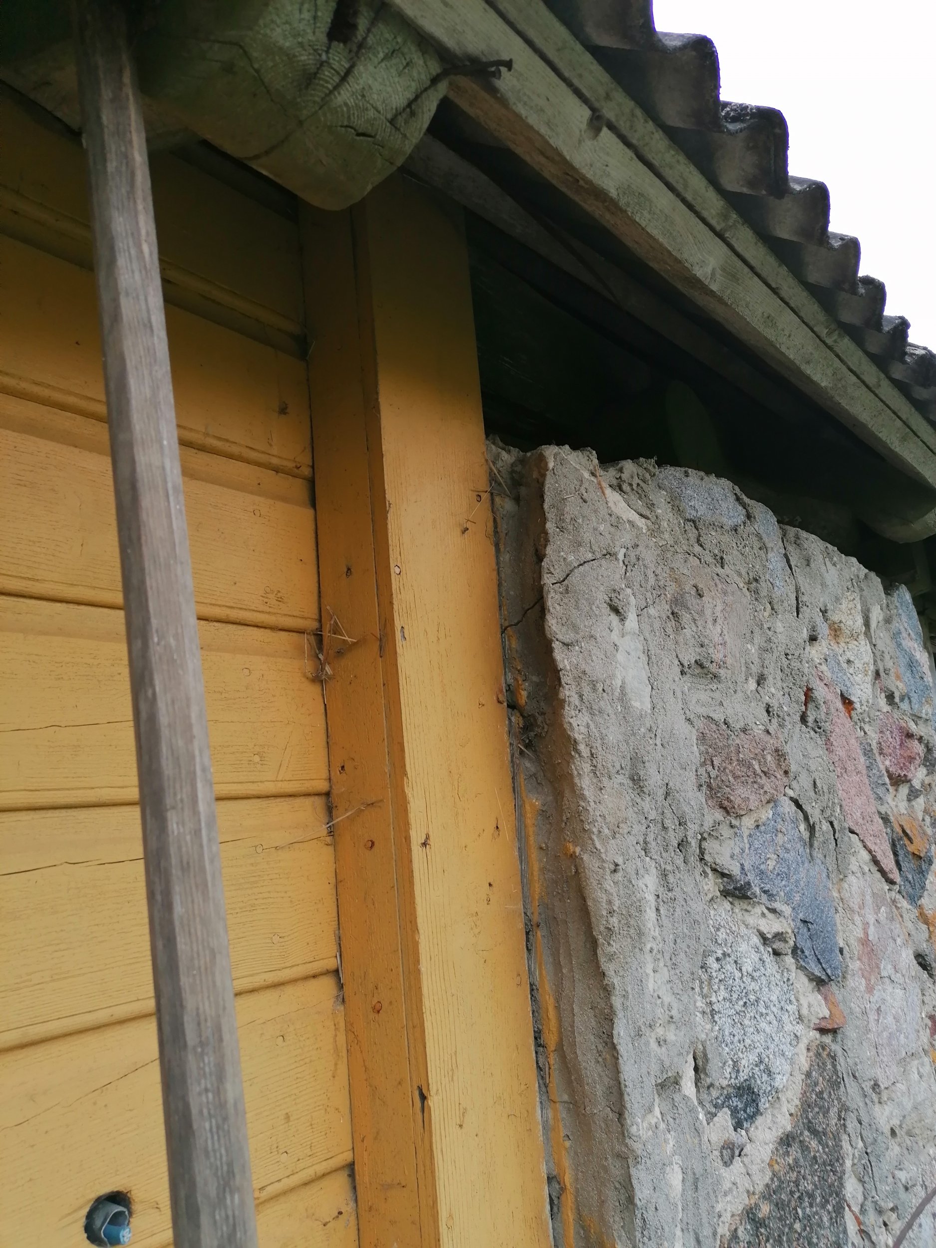 Maja natuke laiali vajunud, sealt kust maakivi müür kohtub palgiga! Üks sarikas ka natuke kõver seega paar roovi puruks.Vaja maja tõsta või koomale tõmmata!!!