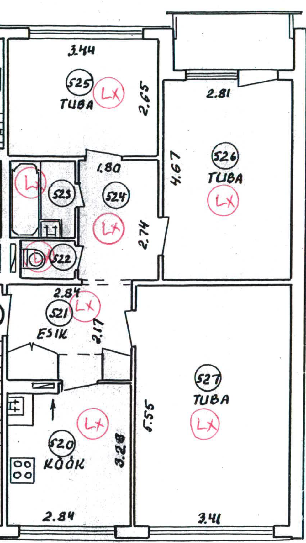 Lae ja seinte renoveerimine tubades 525, 526 ja 527.
