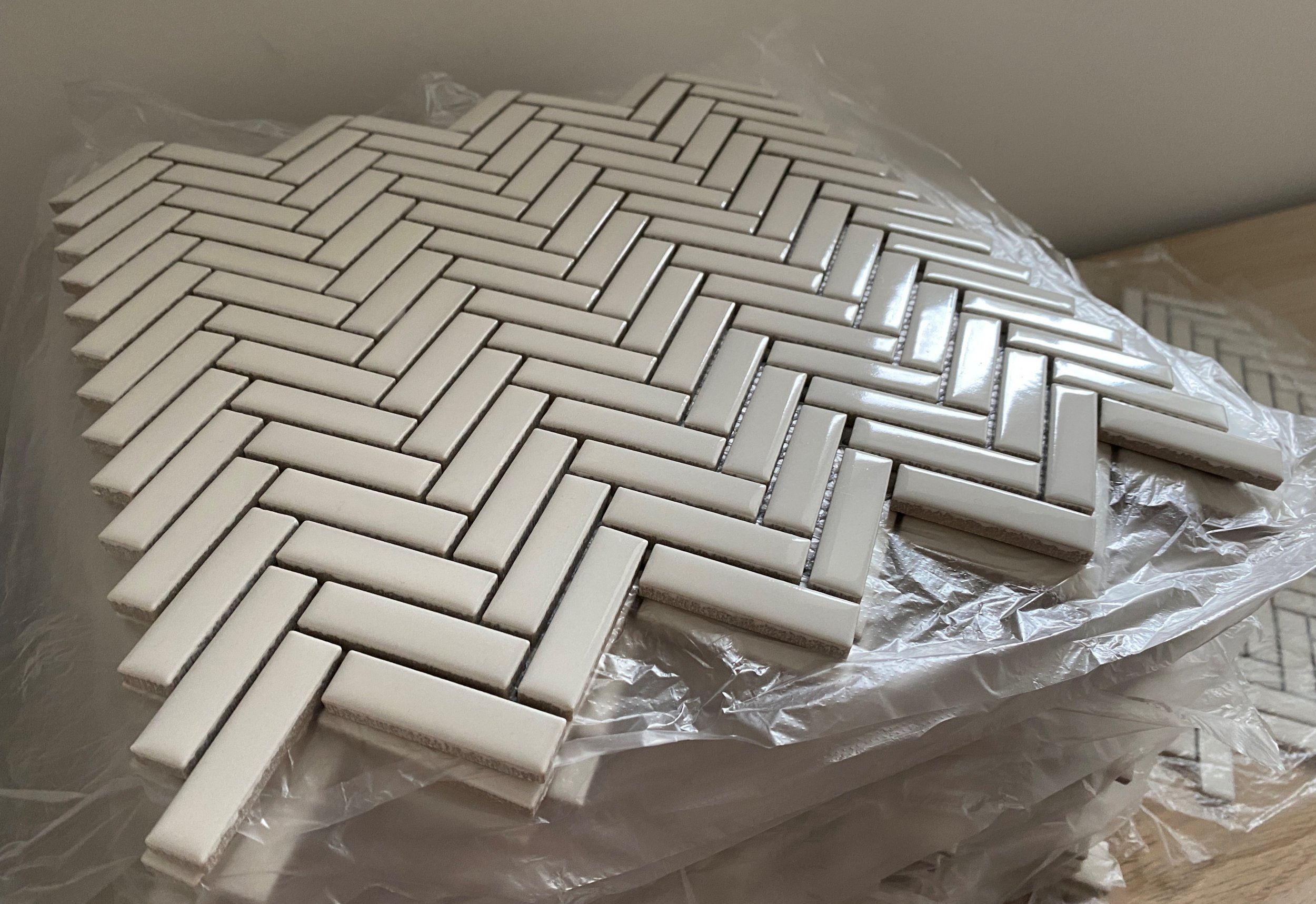 Köögi tagasein (värvitud kipsplaat) 3000 x 560 mm vaja plaatida kalasaba mosaiik plaatidega (ühe lehe mõõt on 27,7x28,3cm). Plaaditavale osale jääb kaks seinakontakti ja kaks riiulikandurit. Lisatud pildid. Plaadid tellija poolt, muu materjal (epoksiidvuuk jne) töö tegija poolt.