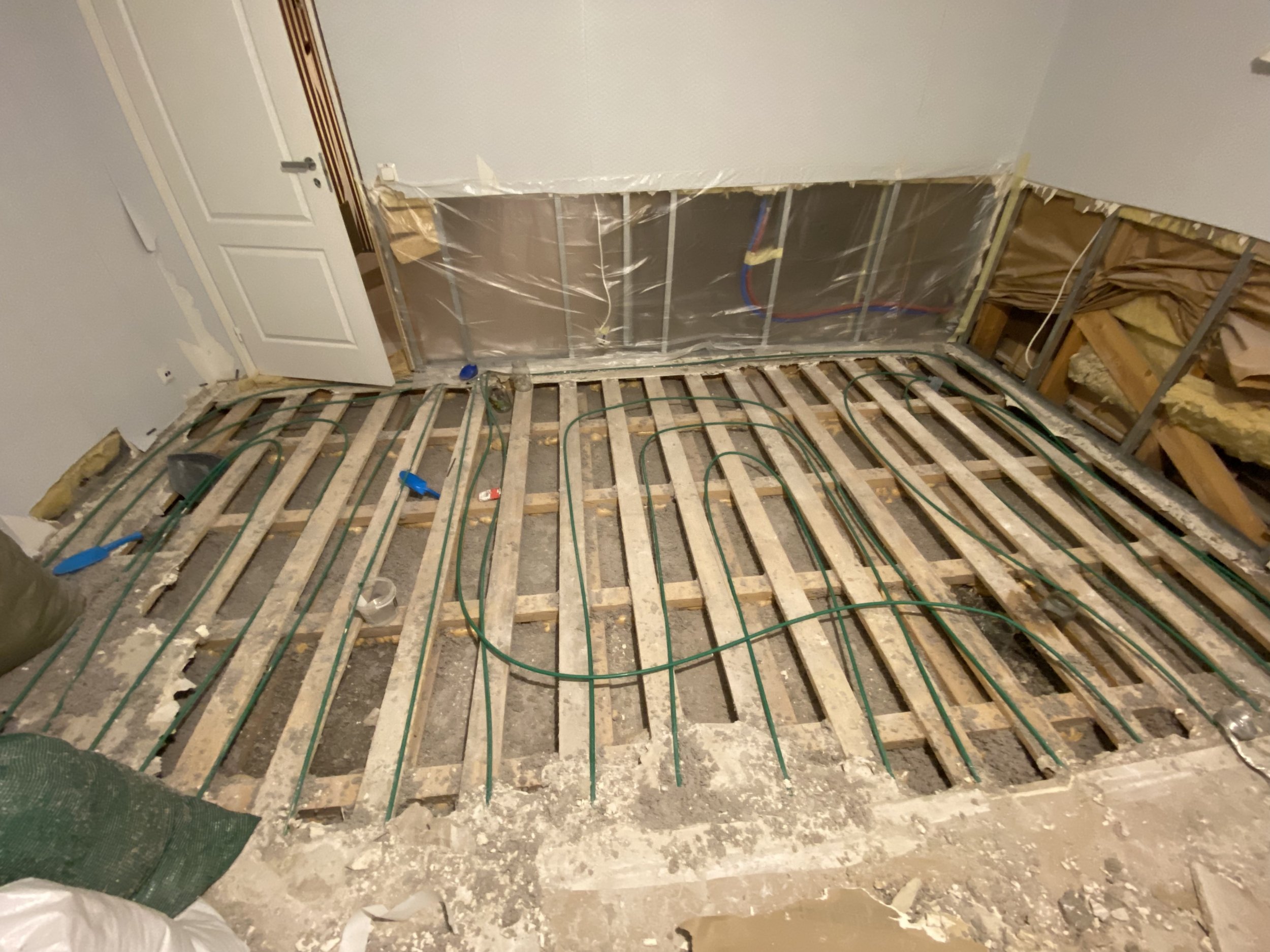 Põrandakütte torustiku paikamine 3 kohast ja kollektorist 12 kontuuri survestamine ning kontroll. Paigatav toru on mõõtudes 10.5x1.25. Põrandakütte taastamise ala on u 4x2m, mis vajab 10 cm puistevilla, põranda kipsplaati ning torustiku katmist kipsigavaluga.