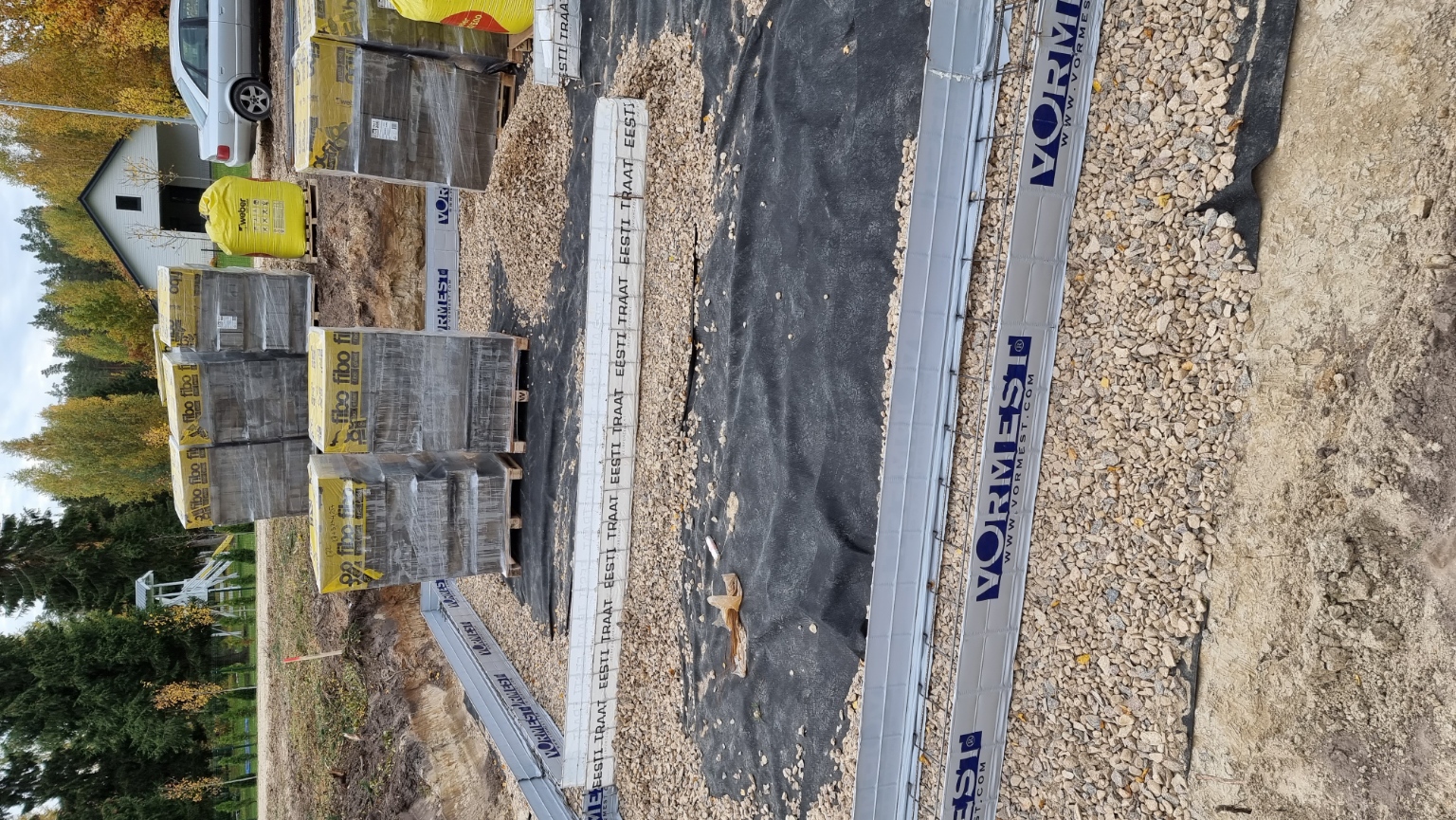 Tänaseks on vormest valatud ja oleks järgmine nädal vaja fibo 200 vundament üles laduda. 54 jm ja 4-5 kivirida (ca 550 plokki), kivid koha peale tõstetud segukott ka.
