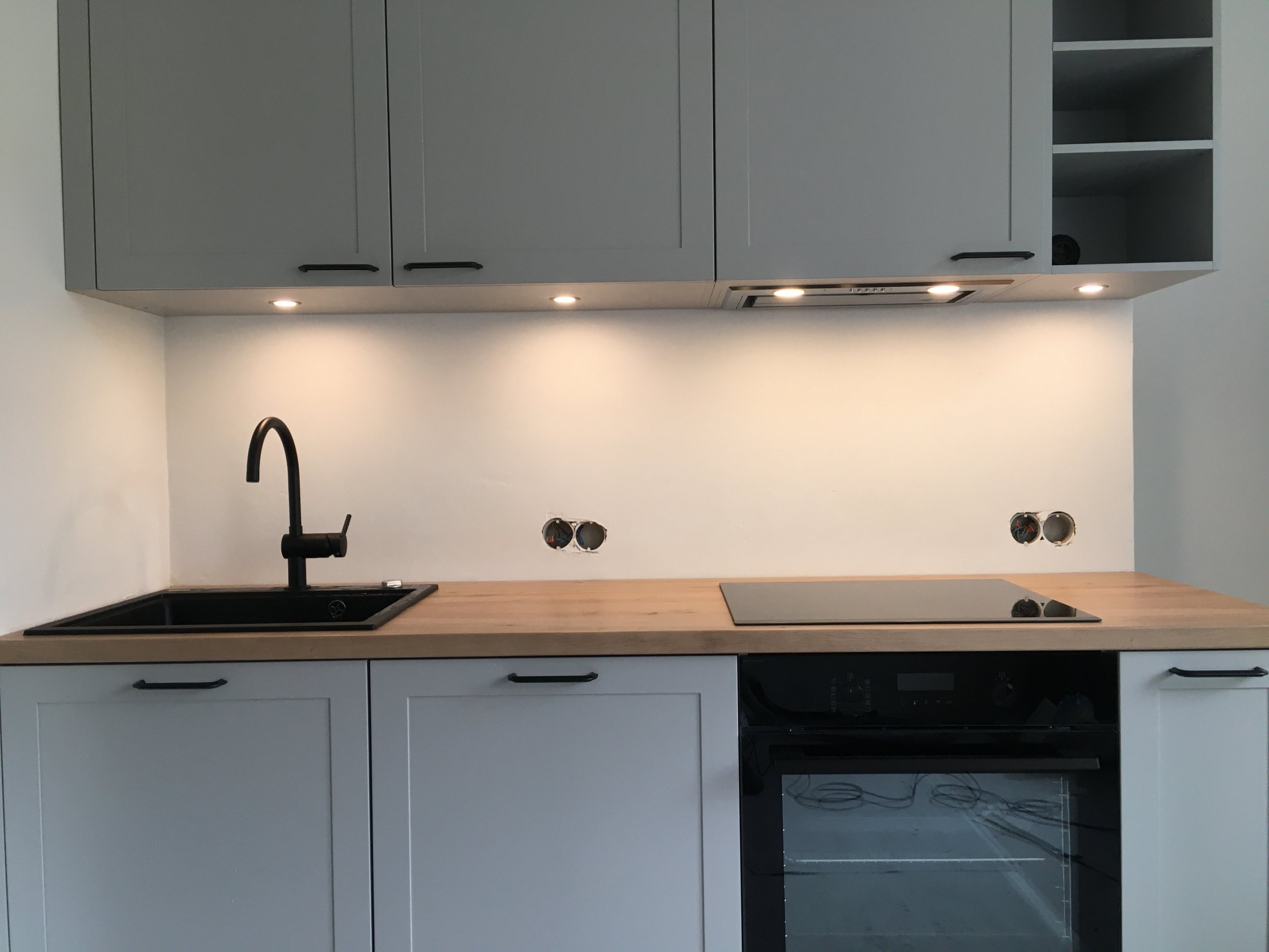 Köögimööbli tagaseina plaatimine ja vuukimine.