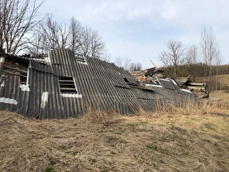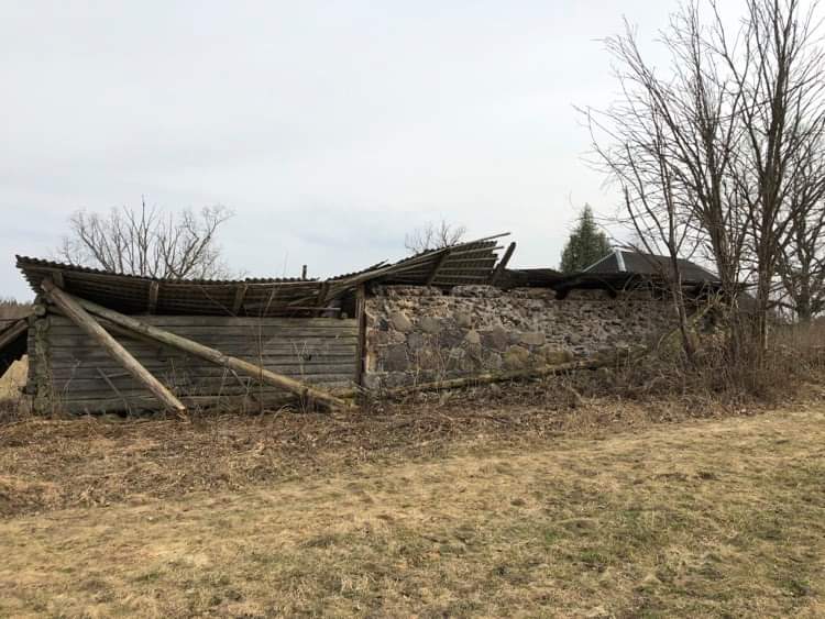 Lammutada lume all kokku kukkunud küüni puidust seinad ja puitsõrestikuga katus, sh eterniidist katuseplaadid. Maakivi osa lammutama ei pea.