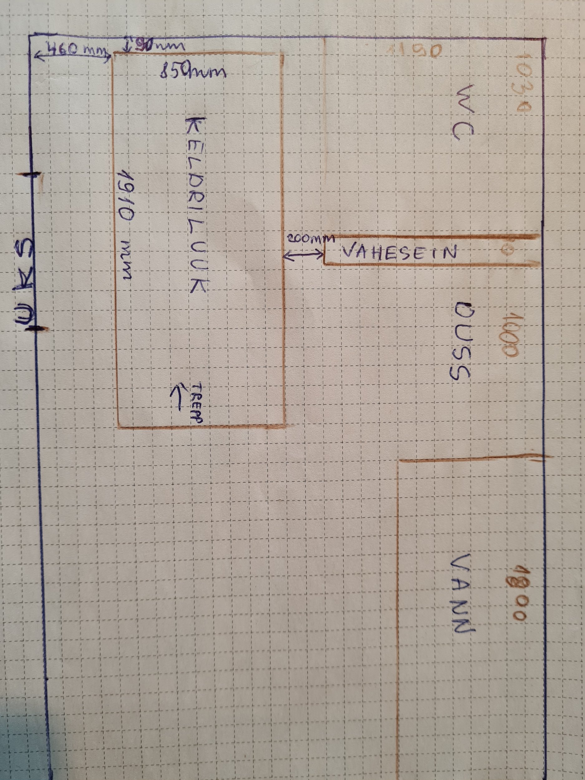 Vajame keldriluuki valmivasse vannituppa. Keldriluugi mõõdud 191cm x 85 cm.