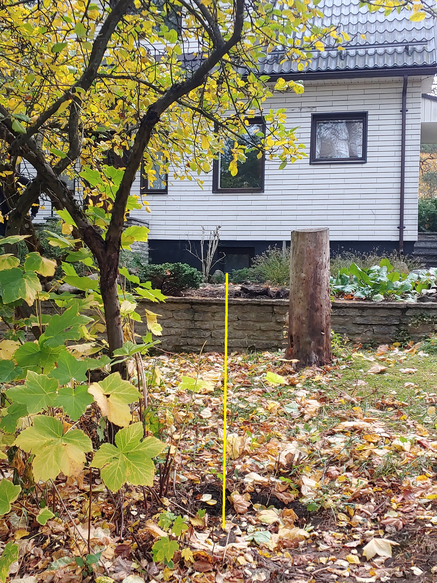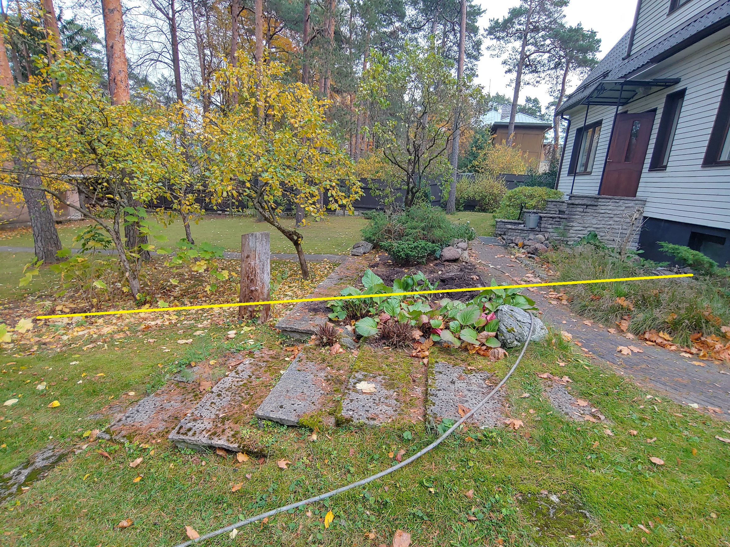 Piltidel kollase joonega markeeritud osas vahetada katkine kanalisatsioonitoru umbes 11m ulatuses. Toru asub umbes 1,60m sügavusel.