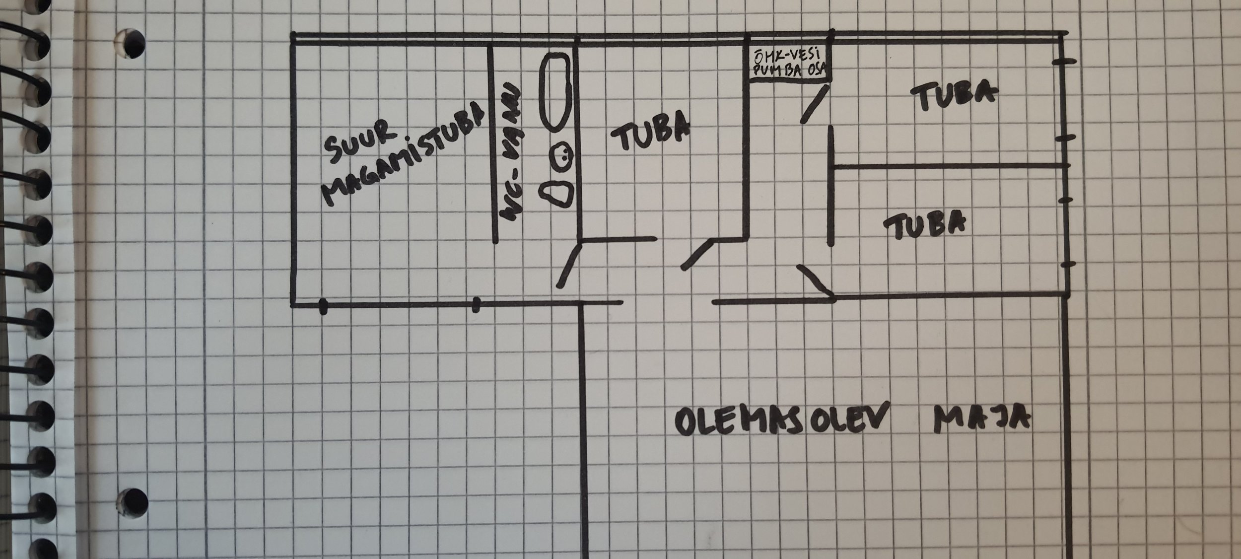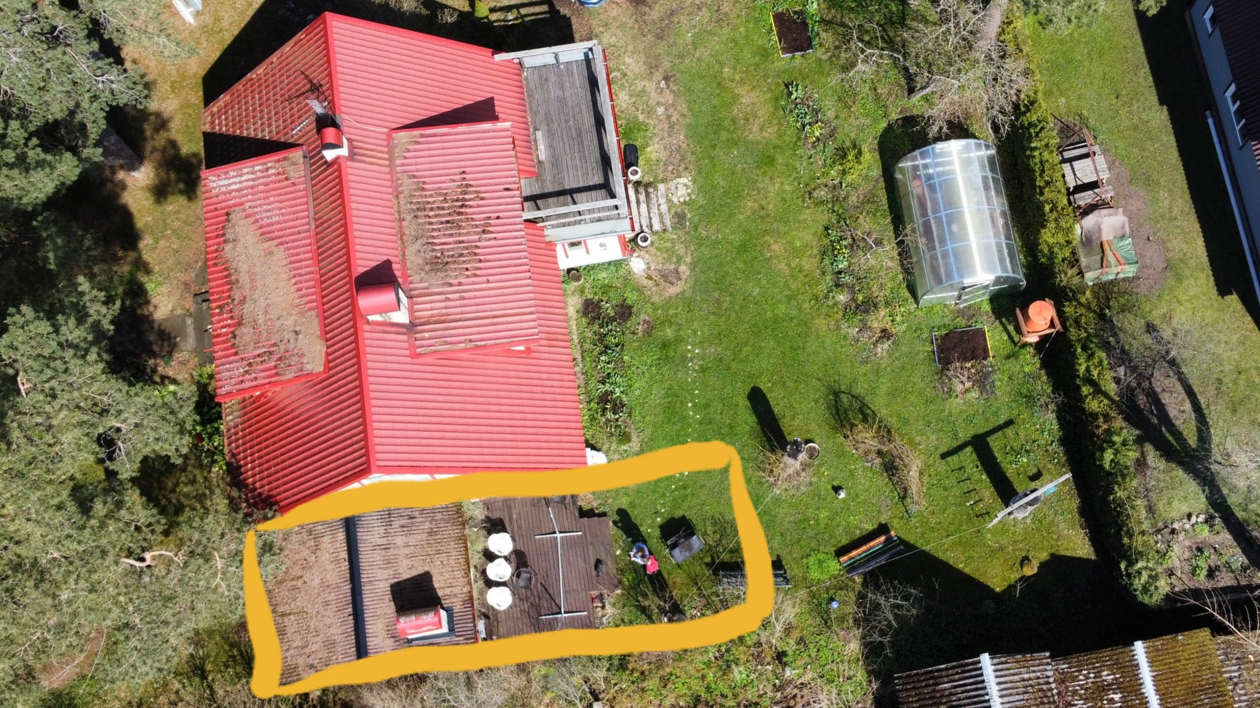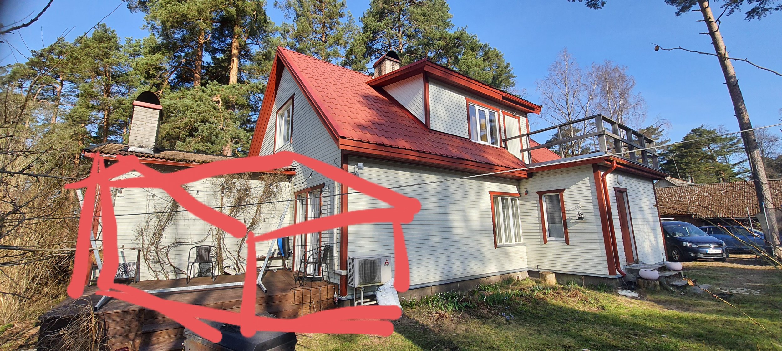 Lisan taustaks ka 2 fotot olemasolevast majast ning fotodel on ära märgitud juurdeehituse asukoht. Lisaks esialgne plaan juurdeehituse ruumide paigutusest.