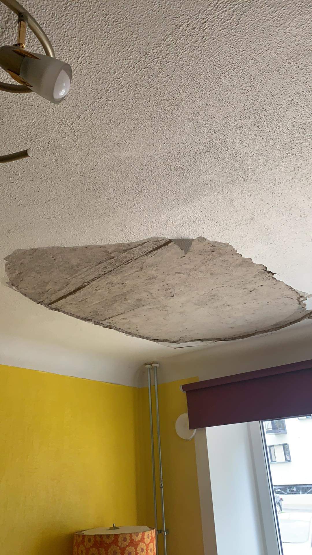 1960ndate keskel ehitatud paneelmajas andis lae krohv järele. Vaja oleks eemaldada ülejäänud lahtisepoolne krohv ja lagi uuesti krohvida ja värvida.