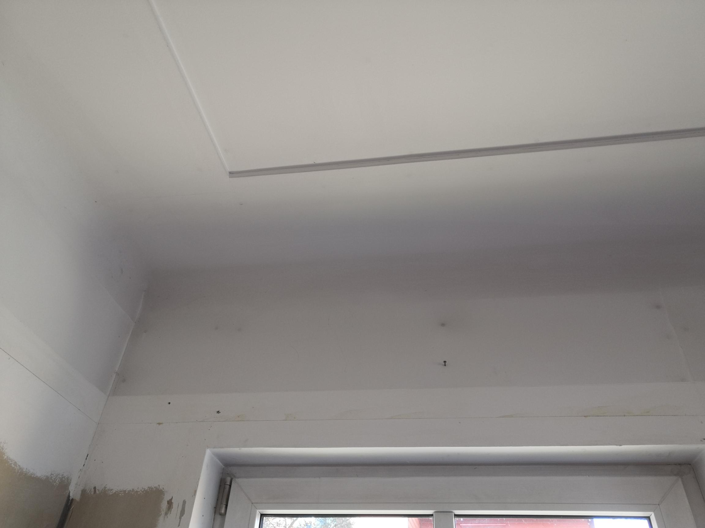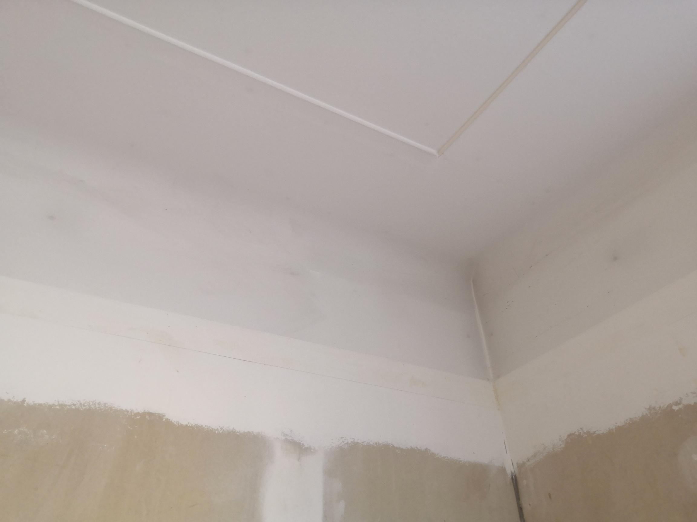 Kipsplaadiga kaetud seintega ning kumerustega laega toa värskendusremont.