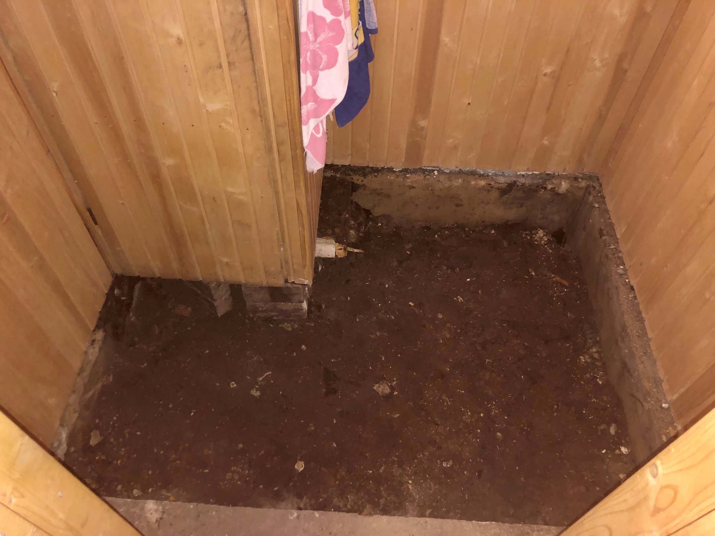 Eelnevalt oli puitpõrand, mis mädanes. See sai üles võetud.