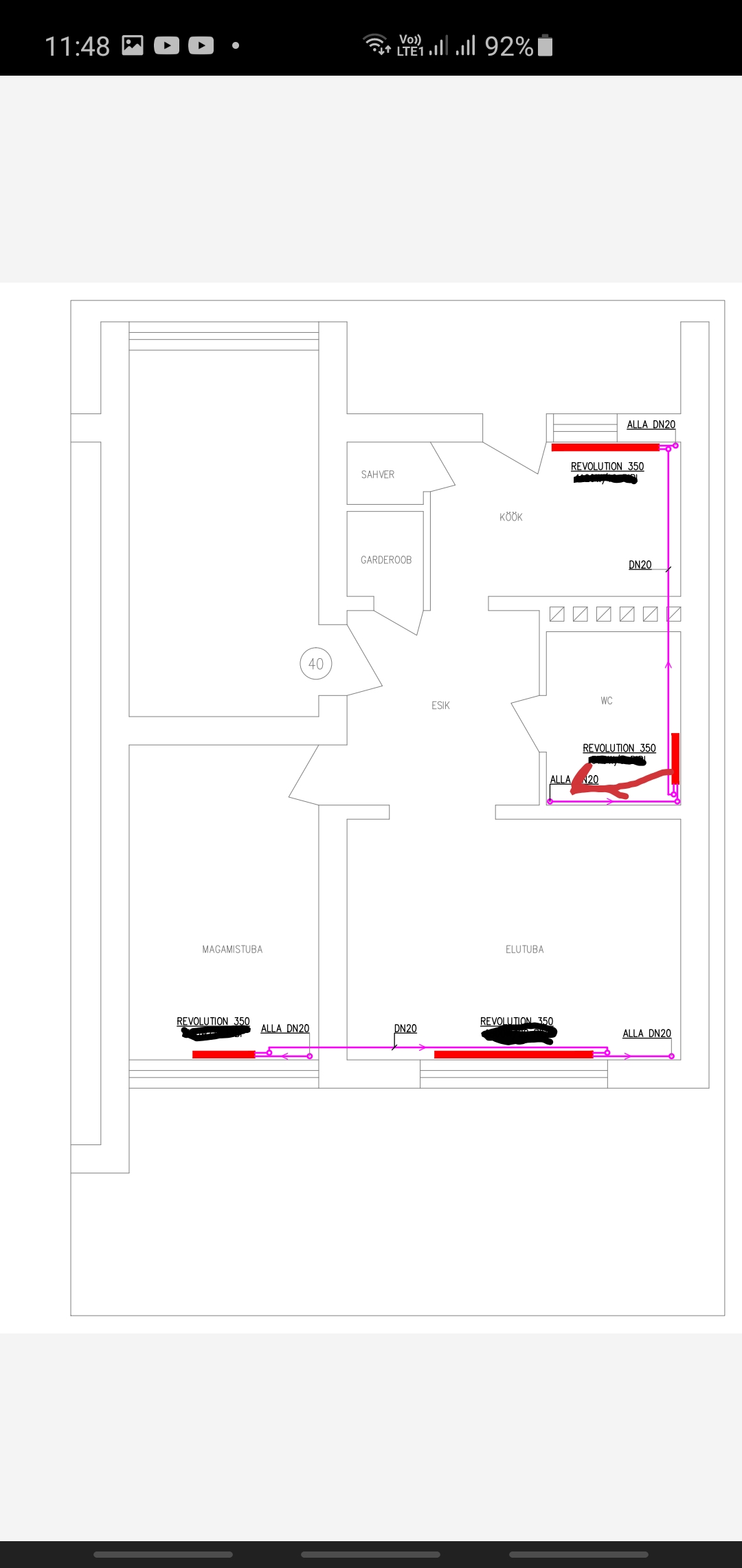 Wc radiaatori asetus tuleb elutoa ja esiku seina sisenurka.