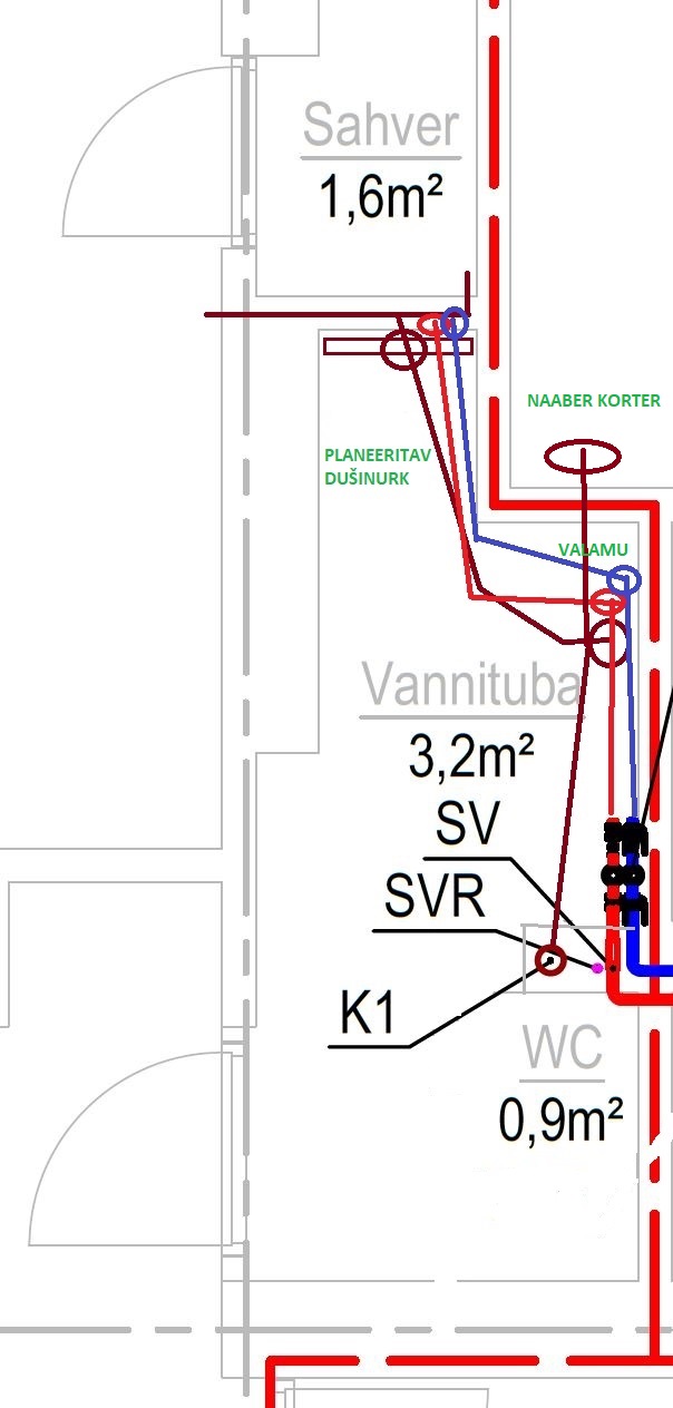 3) ehitada 2,8m2 kergsein (karkass, kips, heliisolatsioon) vannitoa ja sahvri vahele