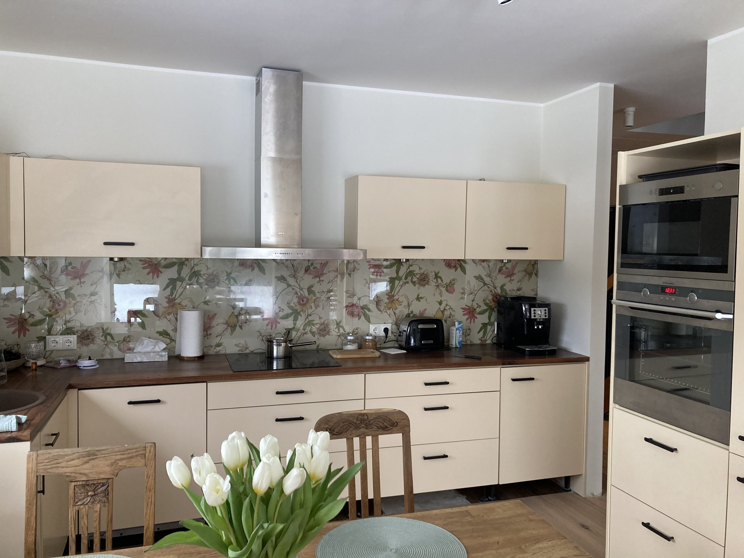 Köök nurgaga u 1,5m*3m. Vaja eemaldada seinaklaas (kinnitatud silikooniga alt ja külgedelt). Eemaldada olemasolev tasapind, utiliseerida. Lõigata mõõtu kase liimpuidust uus tasapind (paksus 27mm, toorik 3mx0,6m), ava valamule ja pliidile. Paigaldada uus tasapind, valamu, segisti ja pliidiplaat (induktsioon), tagasi panna eemaldatud seinaklaas.
