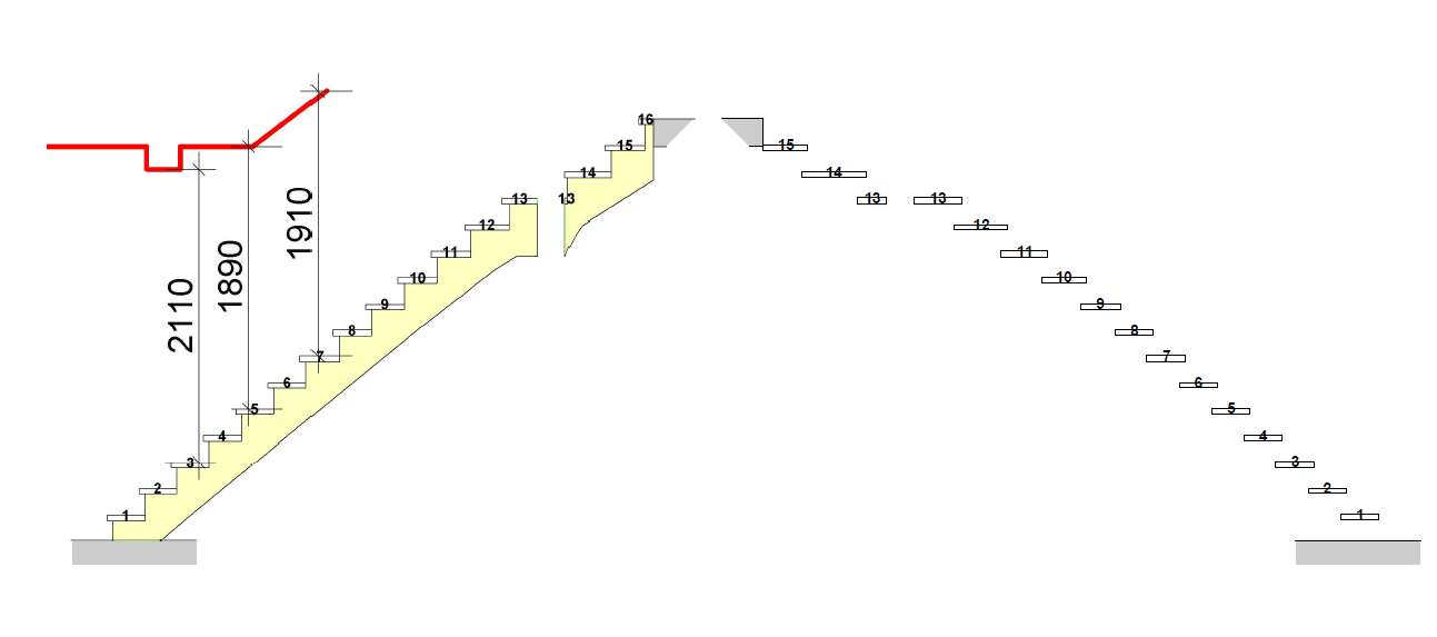 Kahe korruse vahele keskpõsk (metall) trepp millel puitastmed. Objekt Saue linnas, eramaja. Lisatud joonised vajavad ehitaja poolt üle mõõtmist.