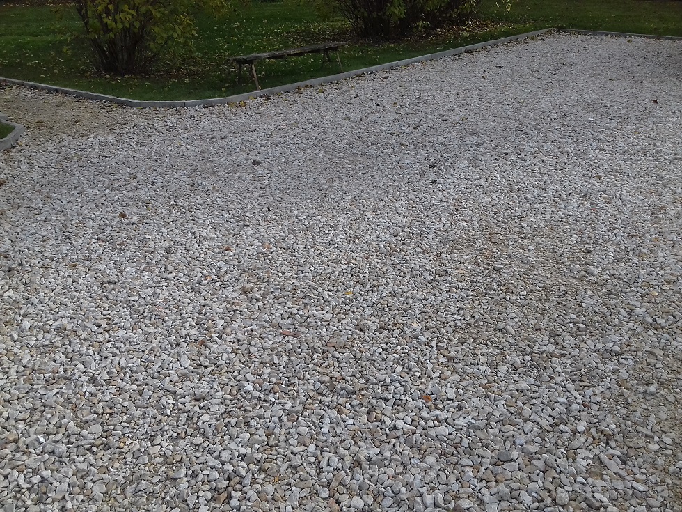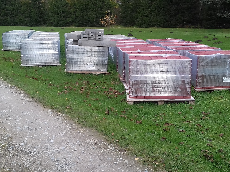 Plats ette valmistatud, killustikuga täidetud ja äärekivid paigaldatud (plats ja kaks u 10 meetri pikkust kõnniteed). Pinnas tihendatud. Vaja tasandada, loodida äärkivide järgi. Olemas Ikodori mõisakivi. Kivid platsist u 20m kaugusel, vajalik tehnika, et lähemale transportida.