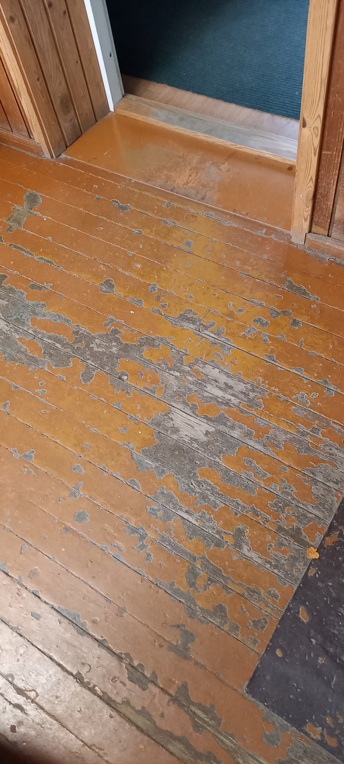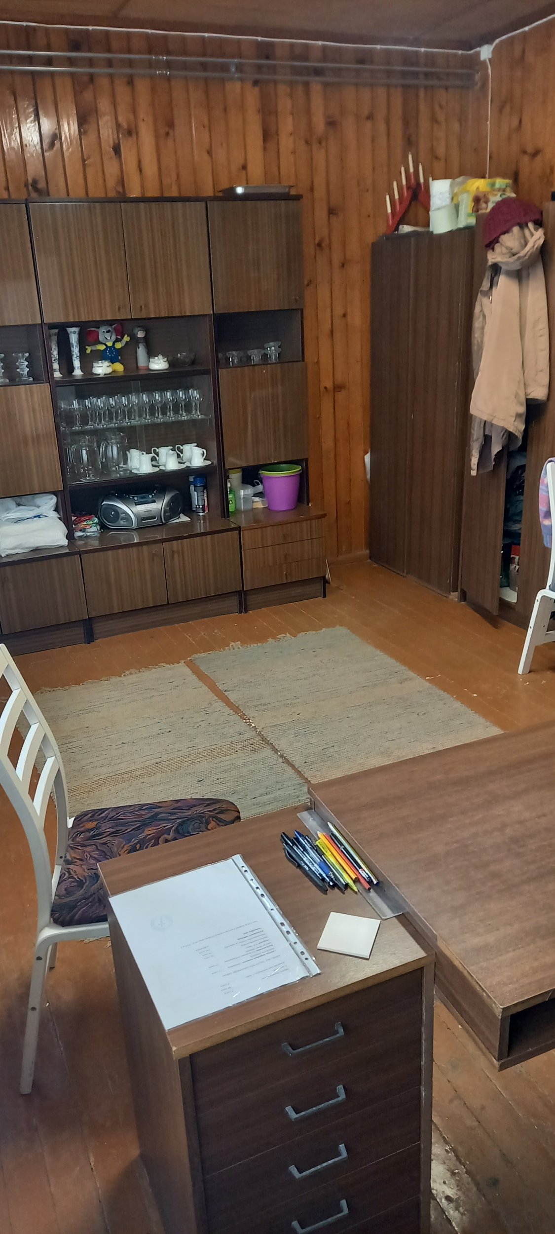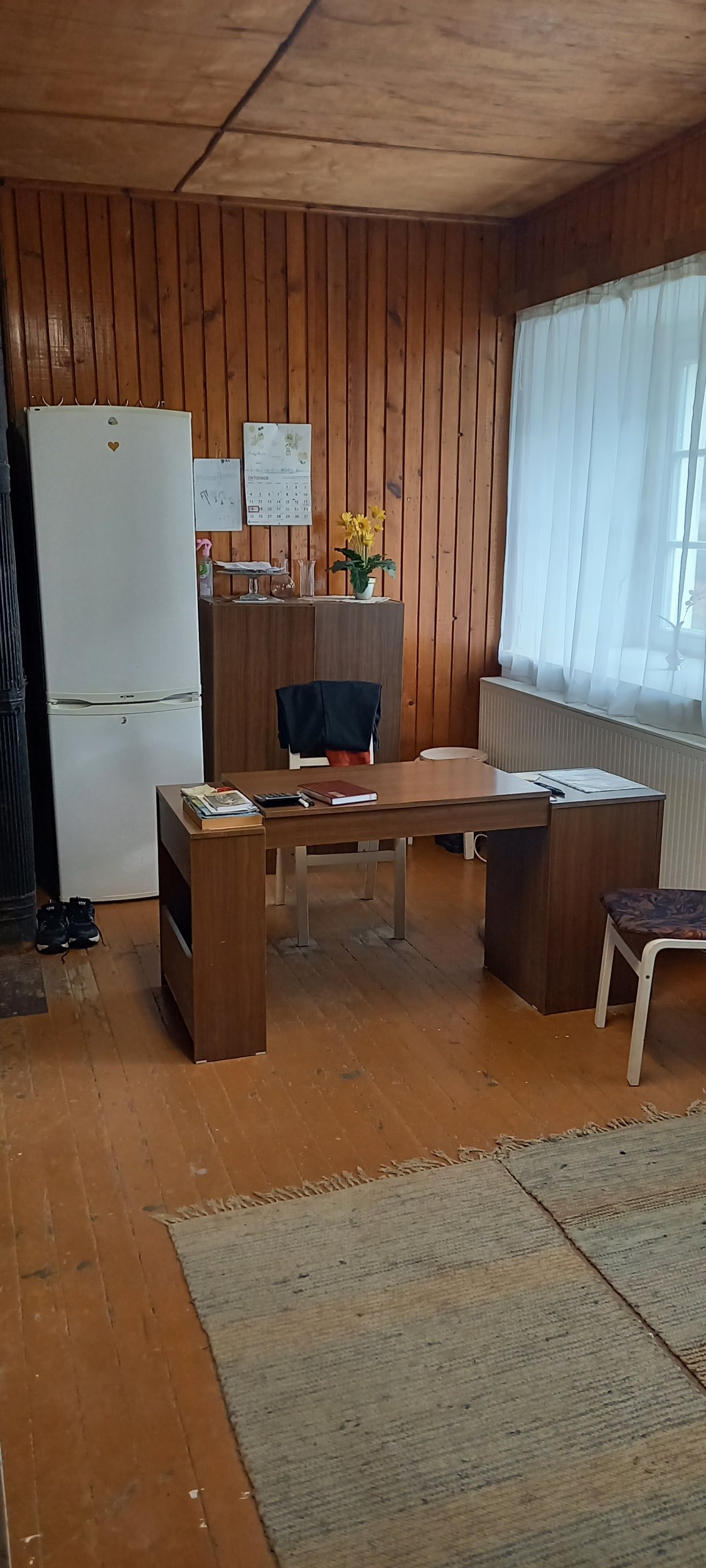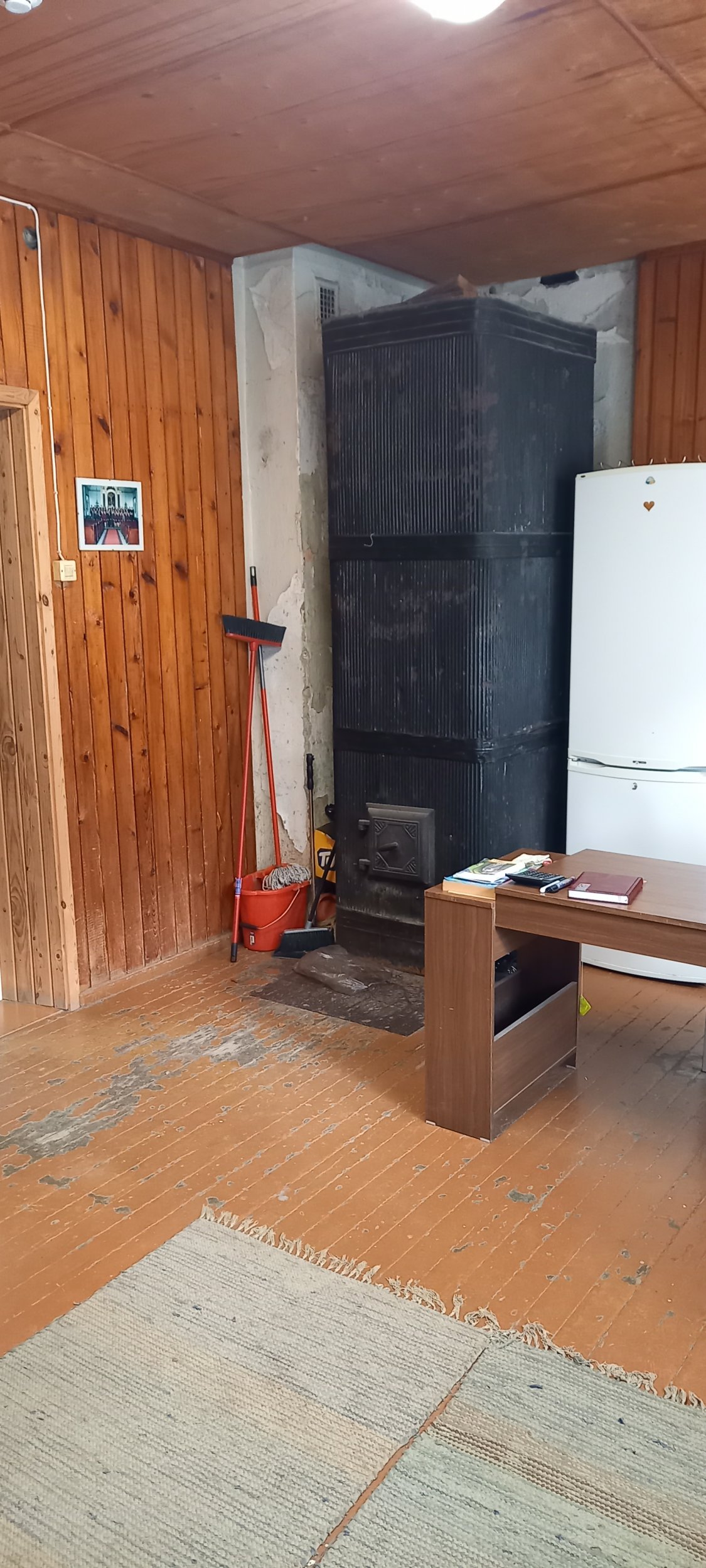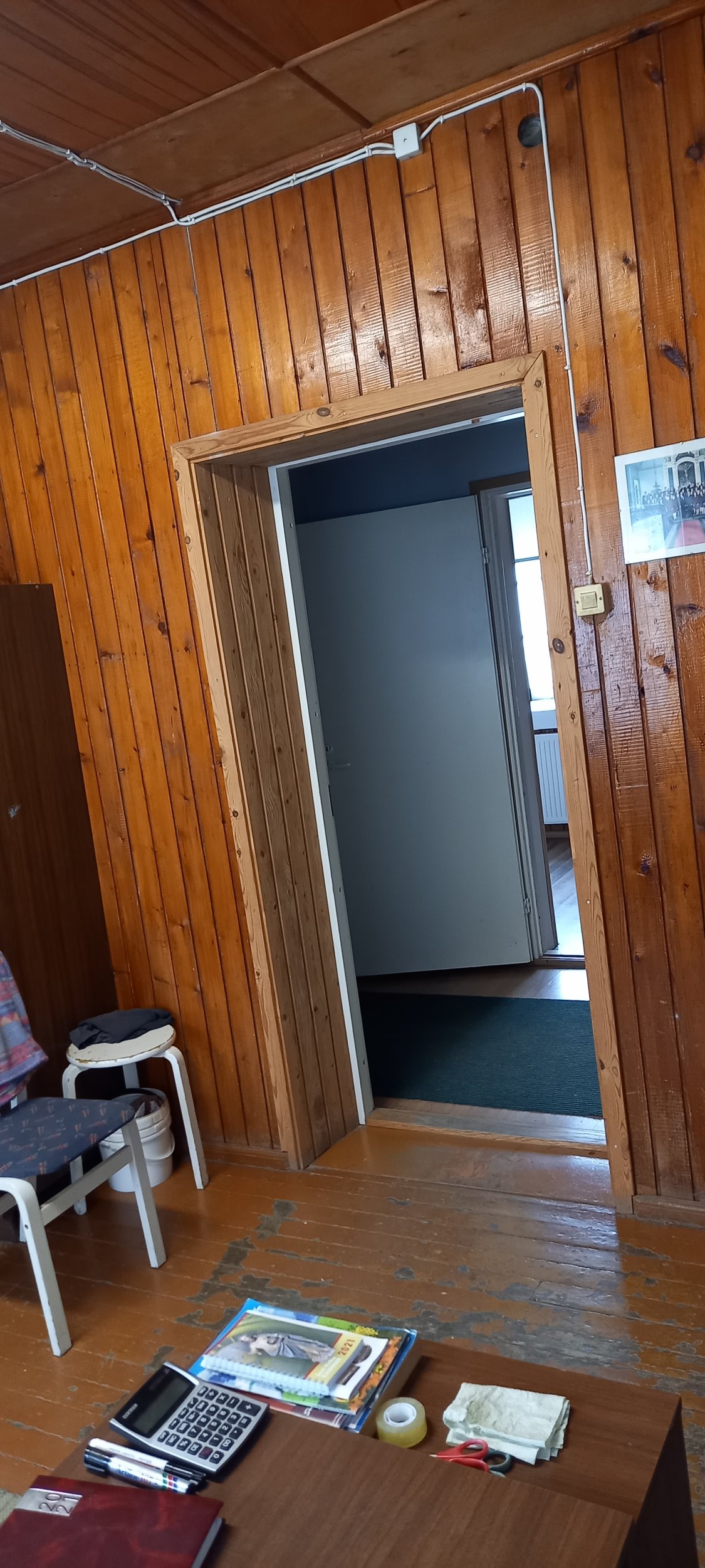 Ruumi üldine remont: lõhkuda välja vana ahi, seinapaneelid puhastada ja uuesti katta puidukaitsega, põrand puhastada vanast värvist ja õlitada, lagi värvida valgeks, aknalauad uuendada. Saepurumööbel jäätmesse viia.
