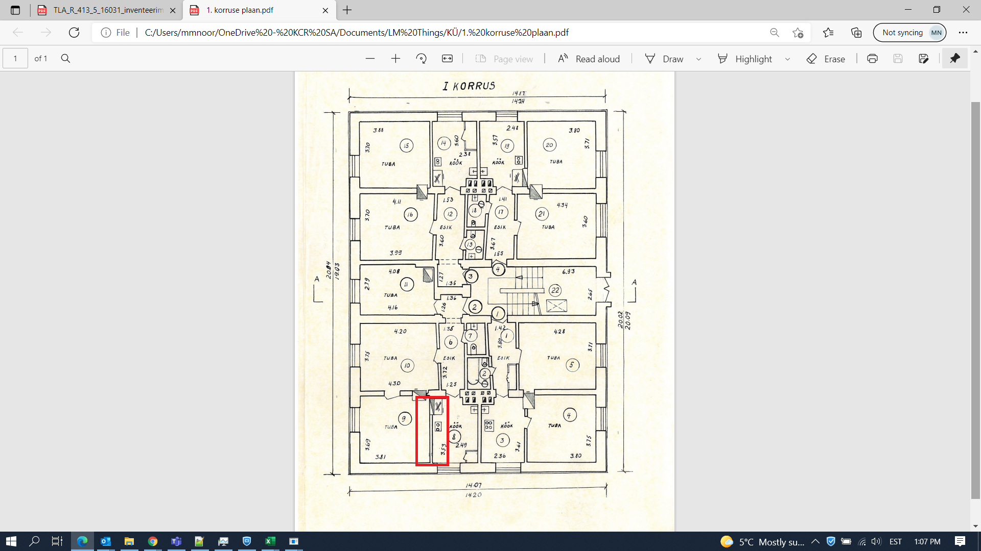 Manuses asendiplaan; lammutatav sein on punasega joonitud.