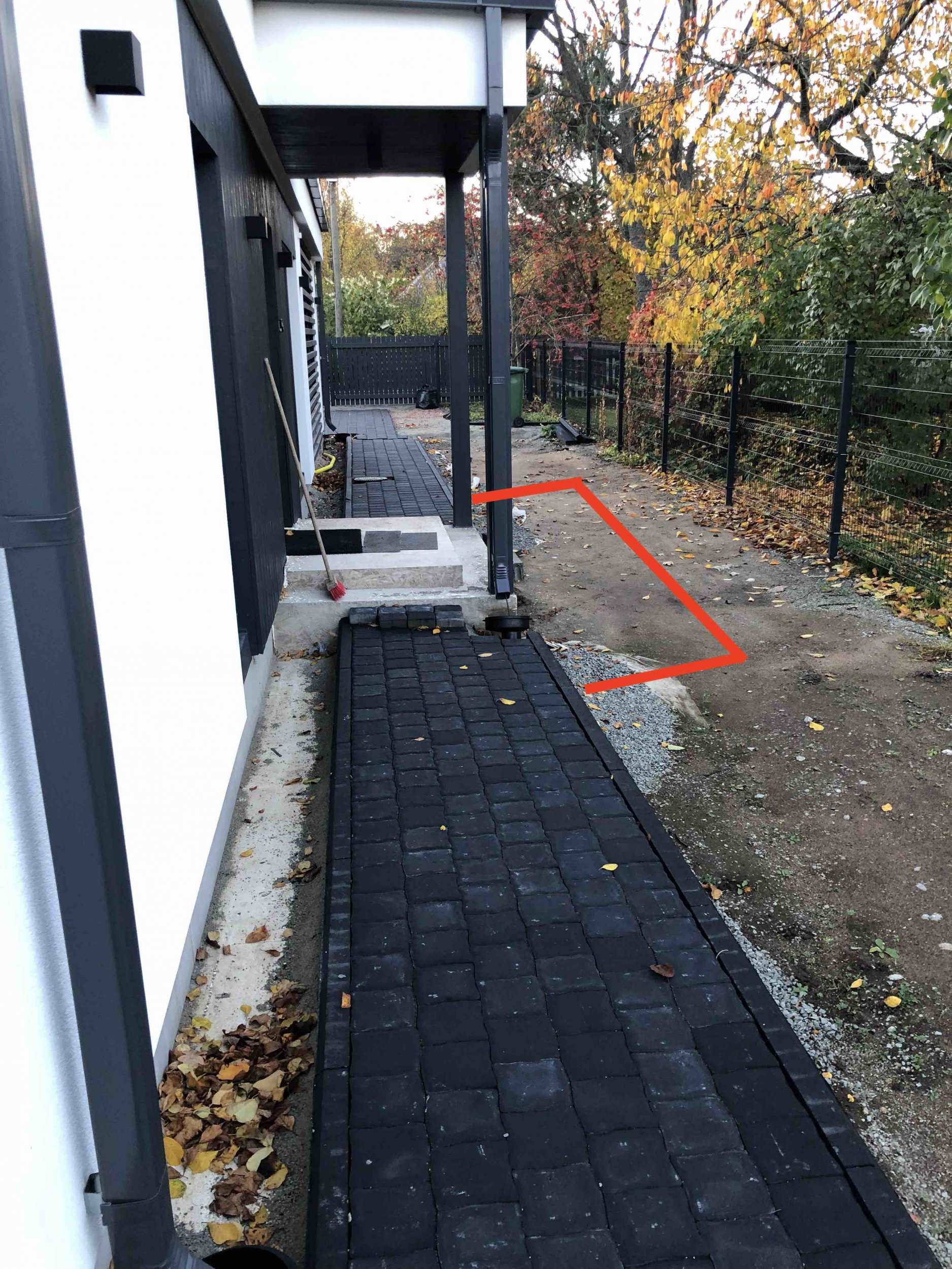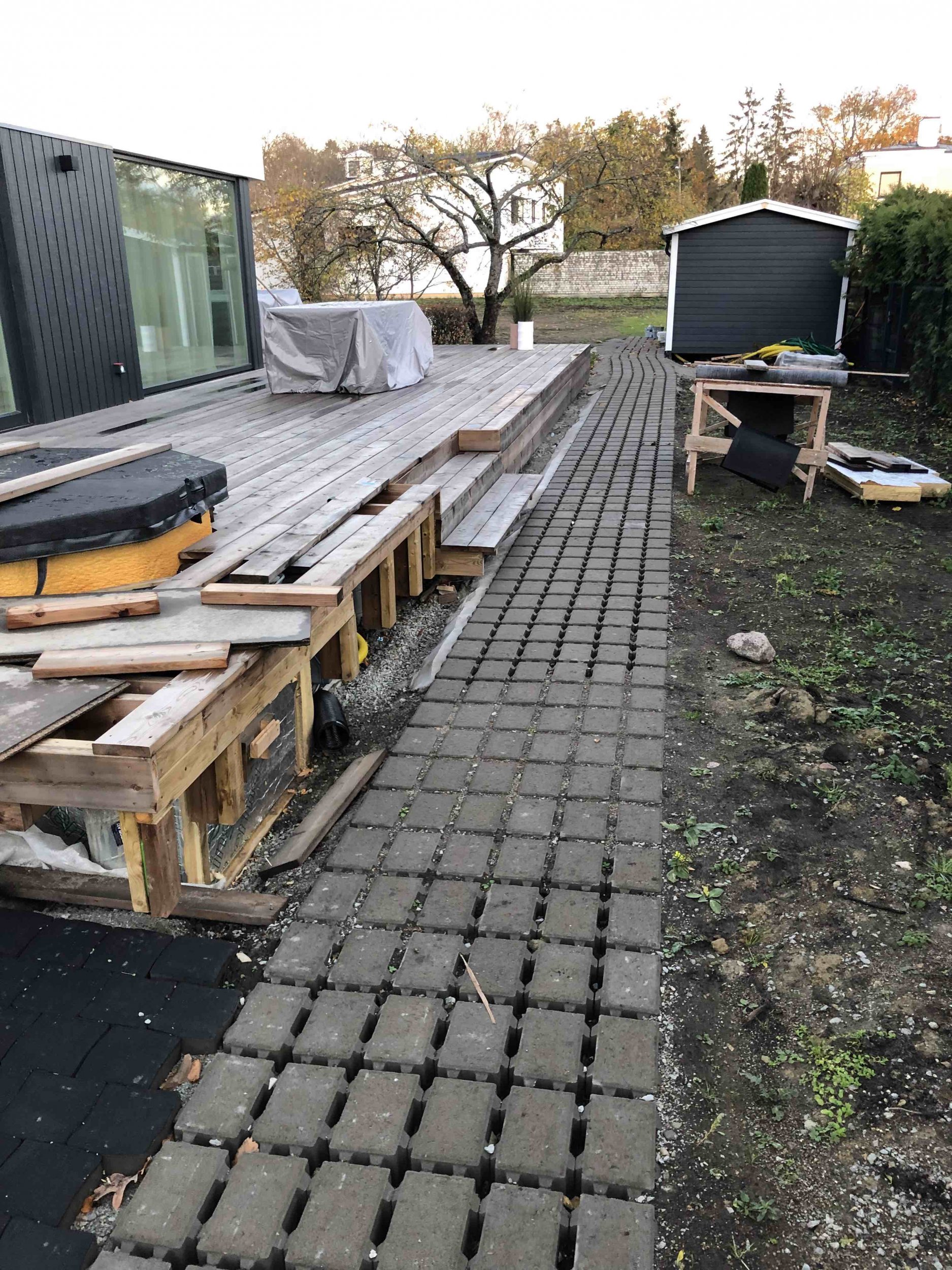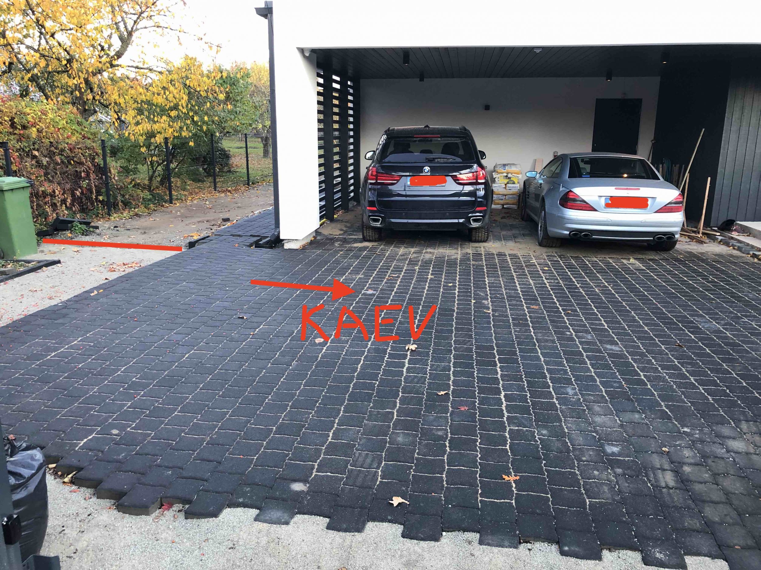 2. Värava ees tänaval vaja veidi asfalti lõigata, alus teha ja panna Framm Kehra klassik (ca 30m2)