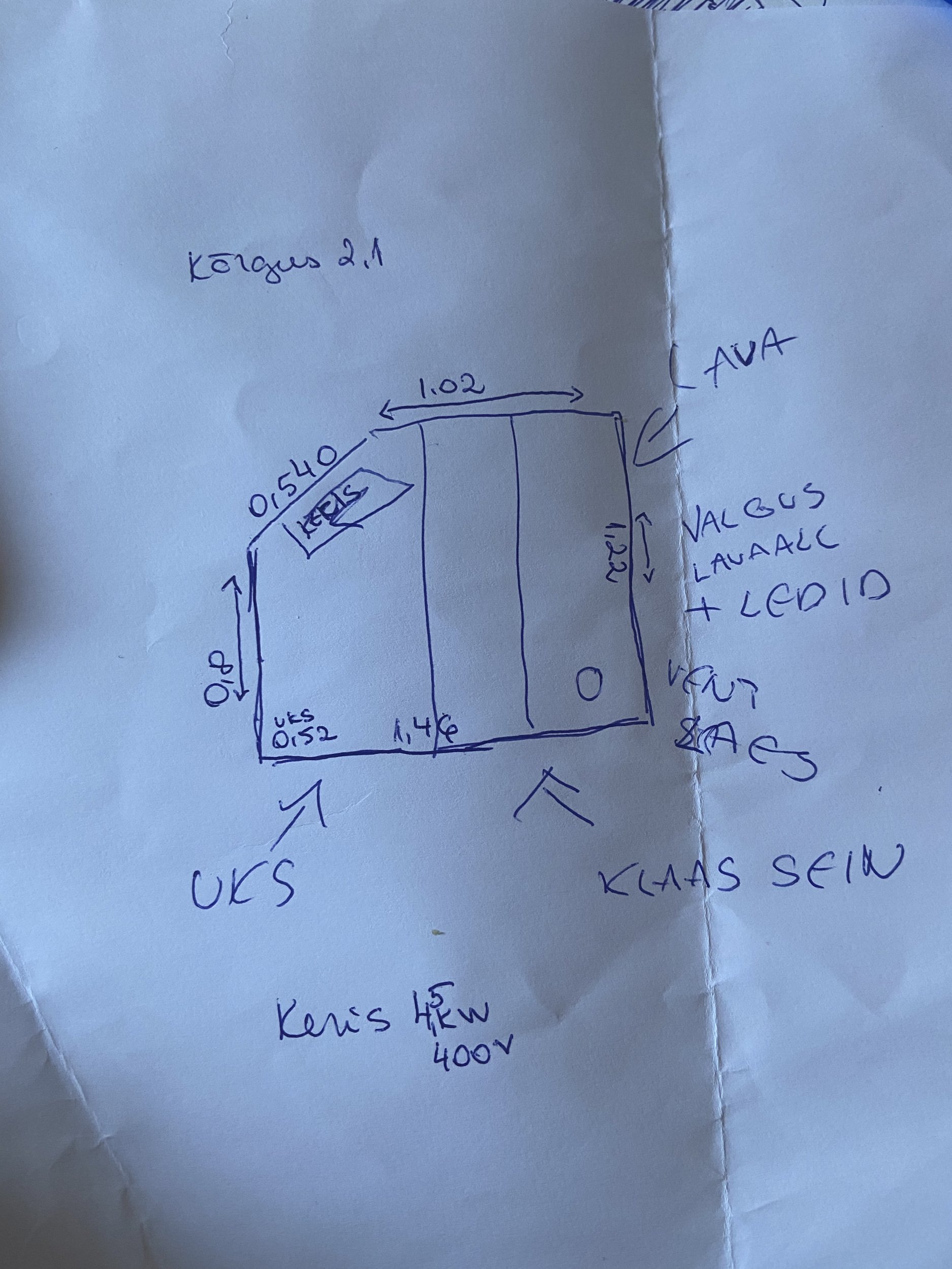 Saunale tehtud käsitsi joonis koos mõõtudega