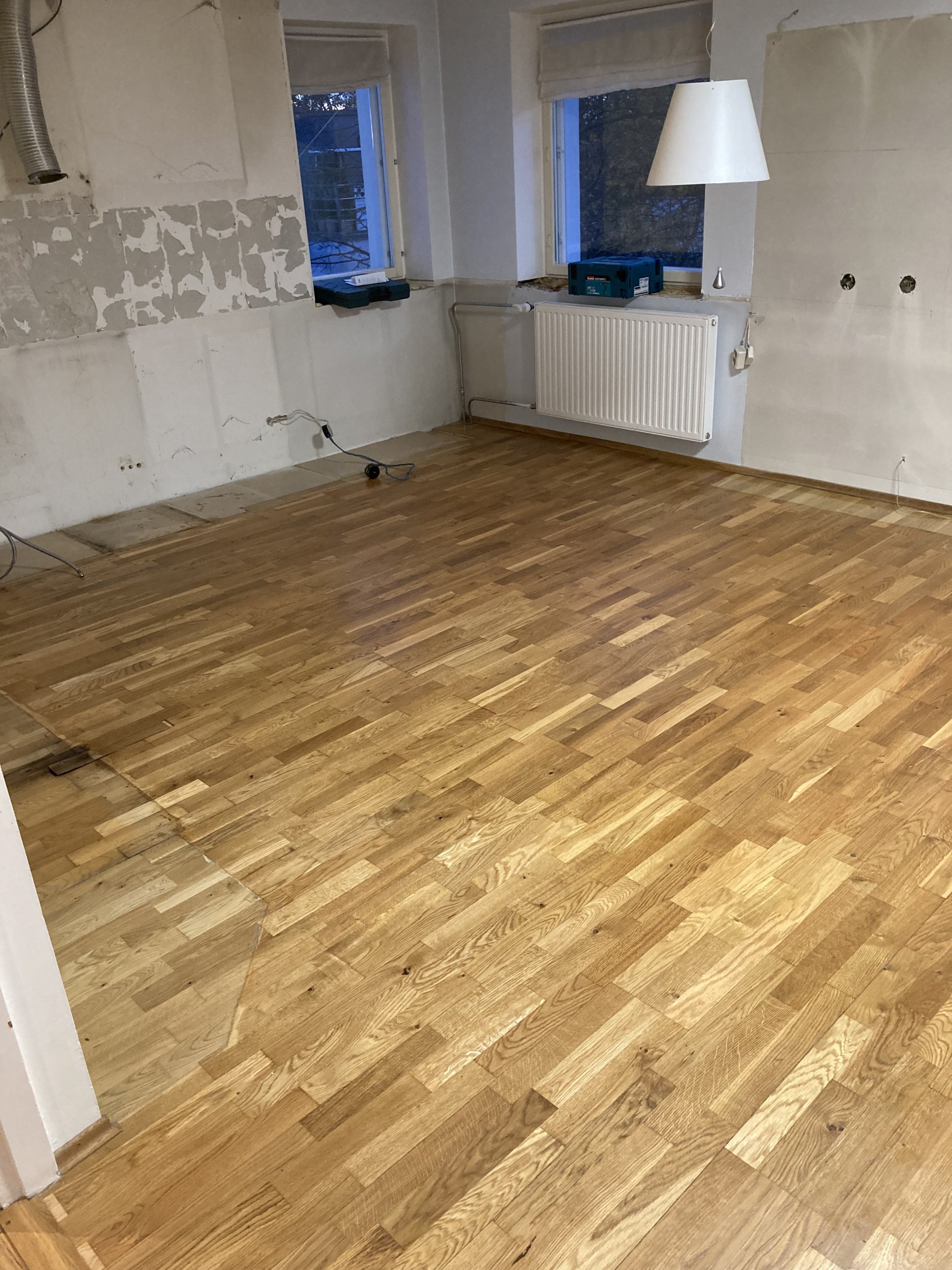 Tallinna kesklinnas, Kassisabas, oleks tarvis köögipõranda parkett lihvida ning üle lakkida. Osa parketist on varem olnud mööbli all ning seetõttu esineb värvierinevusi, mida võimalusel tasandaks Kogumaht põrandapinnal ca 25 m2. Ühes kohas on parkett veidi mädanenud, külmkapist tilkunud veekahjustuse tõttu. See osa vajaks võimalusel vahetamist