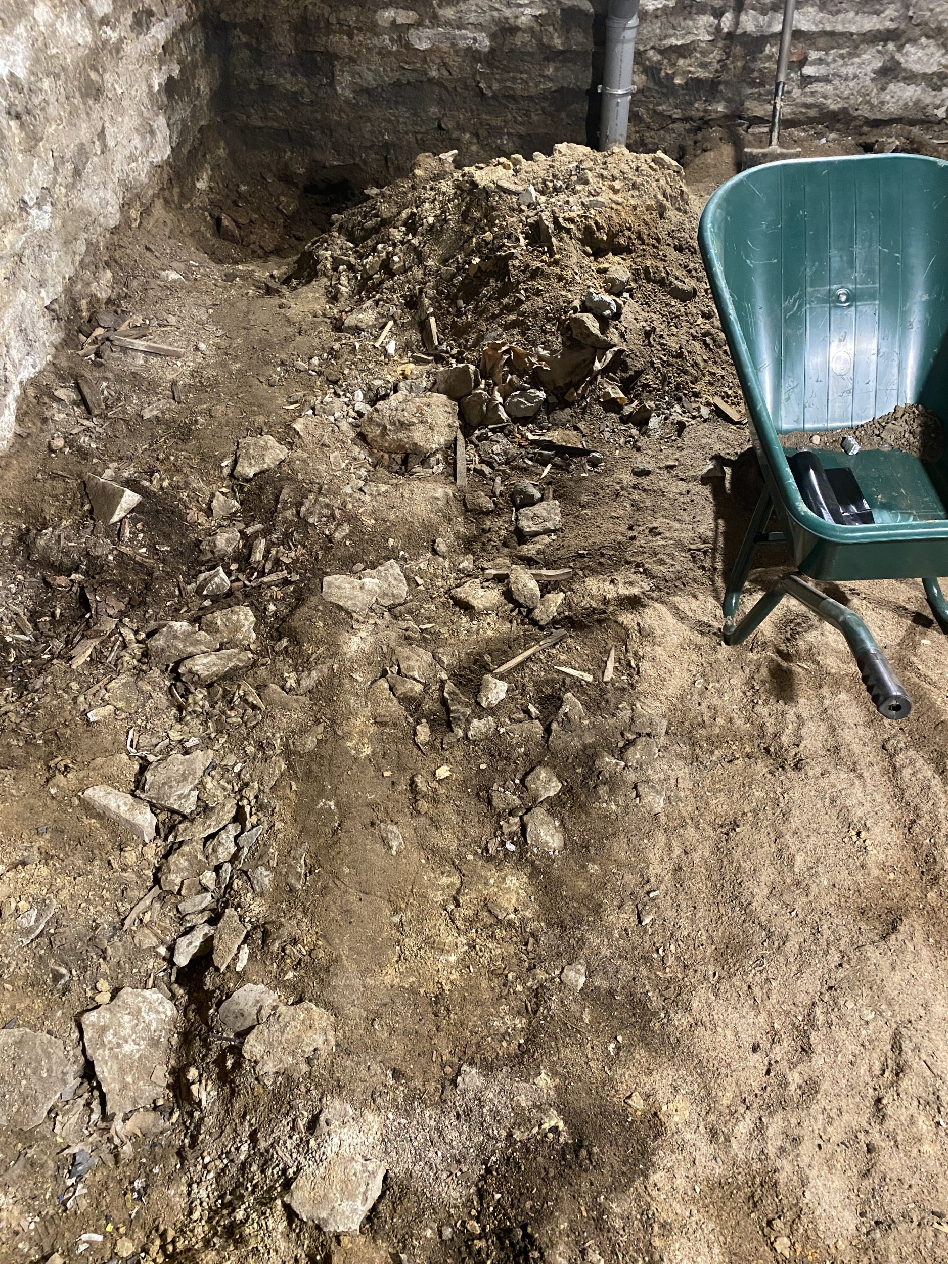 Võimalik paigaldada konteiner või käru hoovi ning otse keldri aknast tõsta konteinerisse. Peaks piisama väiksest konteinerist 6-8m3.