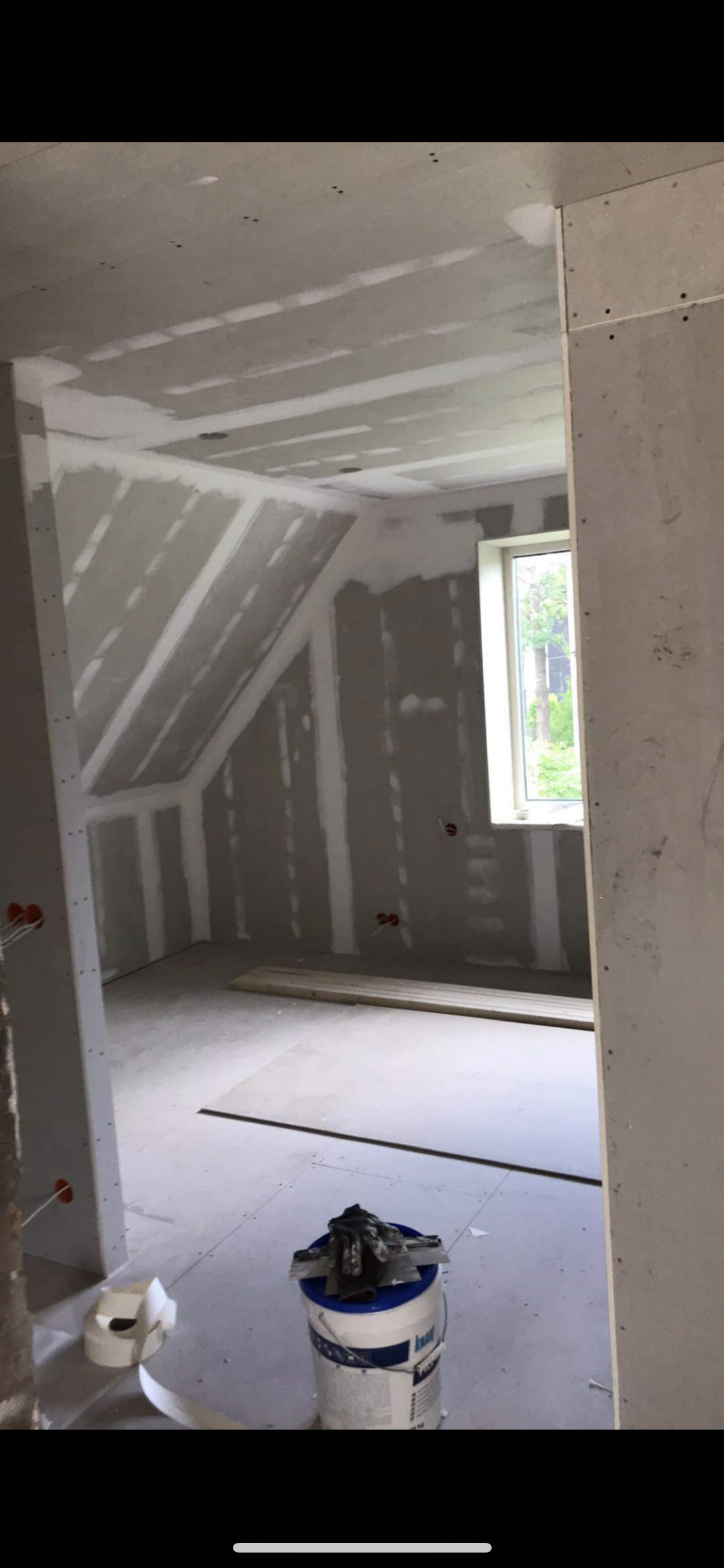 Tallinnas, Nõmmel, tillukese katusekorteri (põrandapind 34m2) seinte siseviimistlus. Pahteldamine, lihvimine, värvimine.