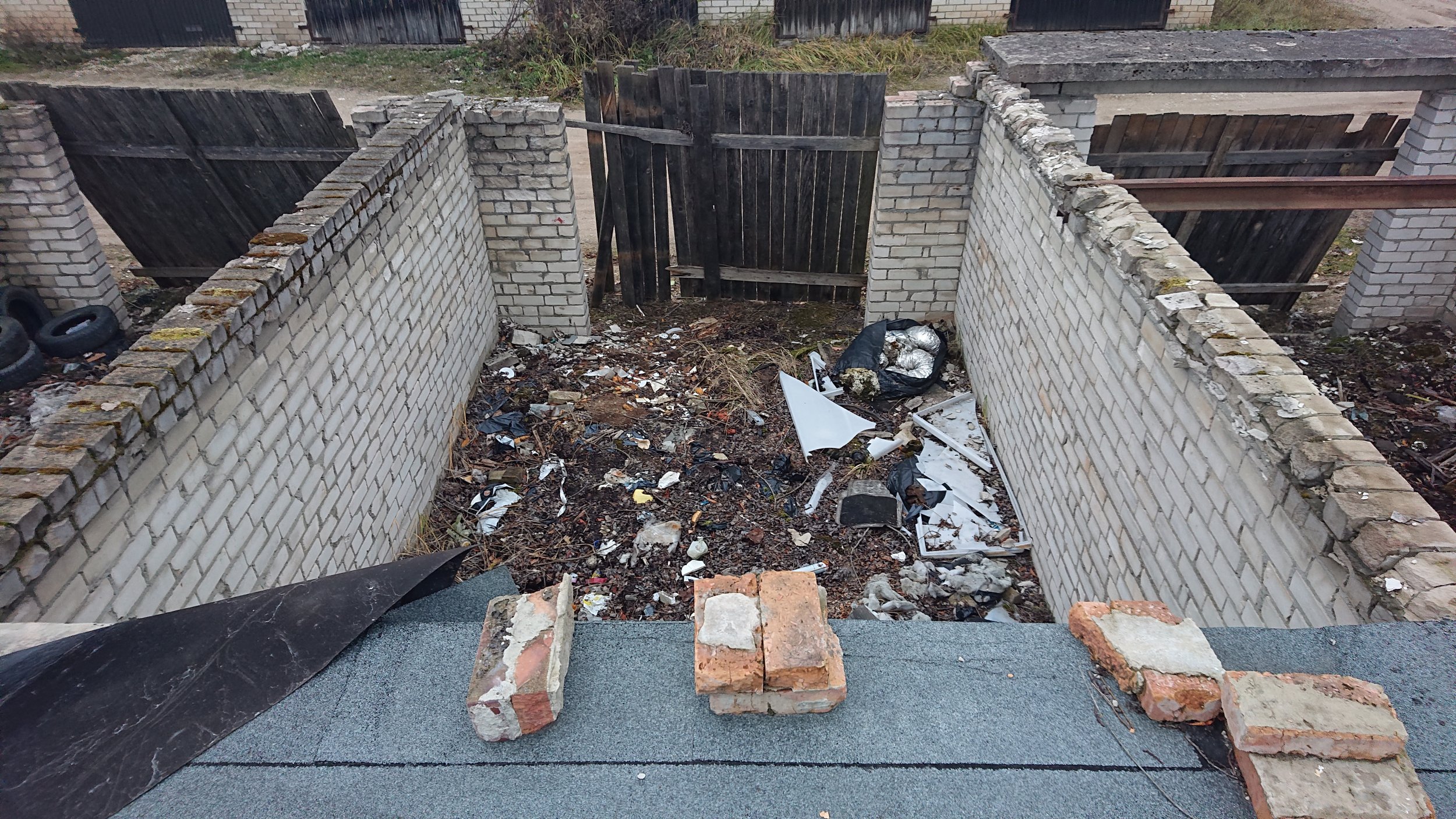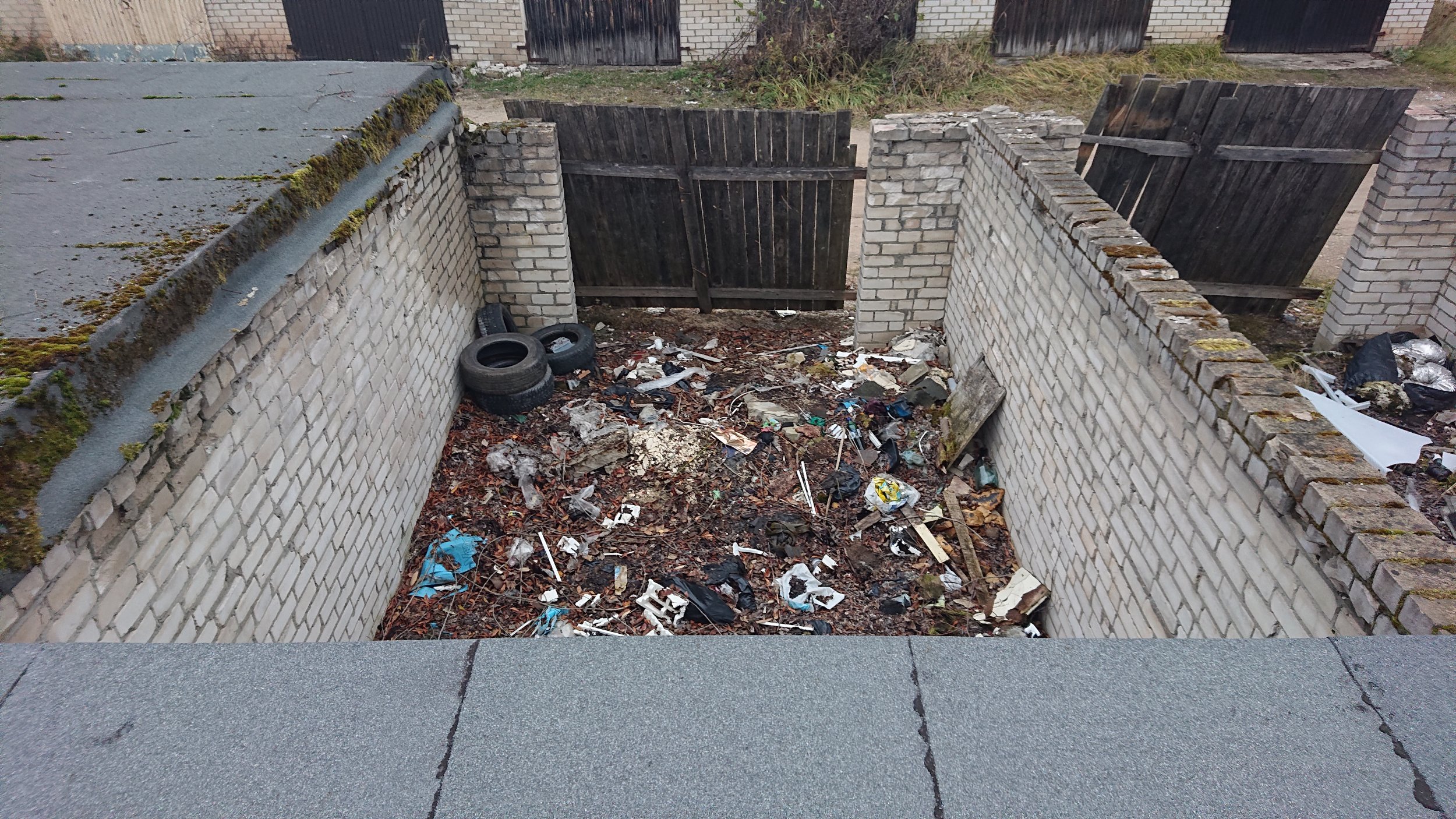 5) 6 boksil pole põrandat. Neljal boksil, mis on katuseta seisnud, on vaja kiht prügist pinnast pealt koorida ning alus patsutajaga kinni tampida. Ülejäänud kahel boksil paistab, et on võrdlemisi puhas liiva/kruusapinnas all.